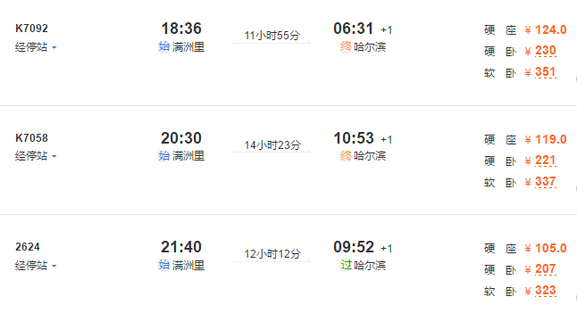 7天行程结束,返程-哈尔滨,有飞机、火车。