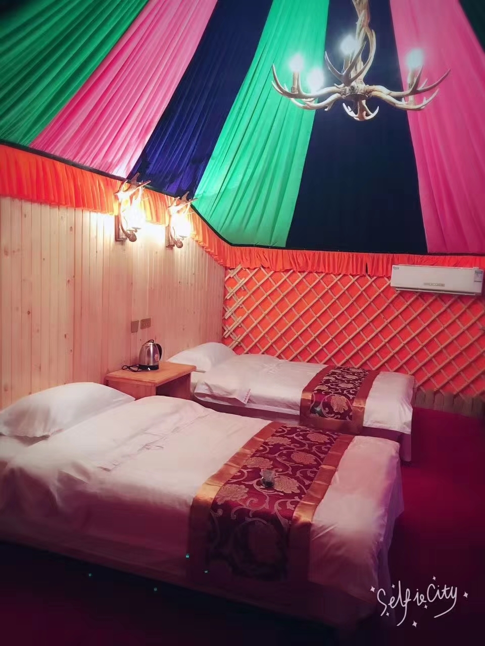 最爱这一晚 可能是我们一起在夕阳的余晖中随性踢着足球荡着秋千的惬意 可能是我们一起围着篝火唱歌跳舞的热情 可能是我们一起躺在草地看着流星划过夜空的浪漫…… 晚上入住 蒙古 包, 蒙古 包的条件自然不比酒店,不过干净有热水,然而因为天太凉洗澡容易着凉,所以最好别洗澡。