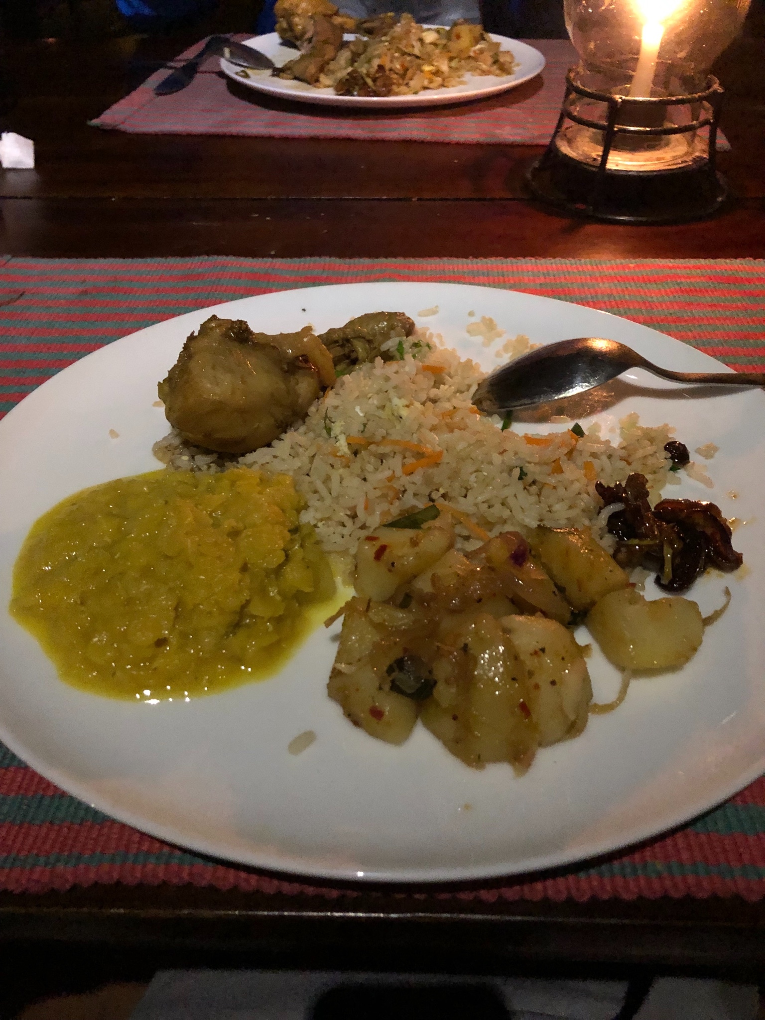 湖晚餐是自助餐,2000Rs/人(≈74元),有南瓜汤、炒饭炒面、咖喱鸡肉等,饮品需要另付钱。