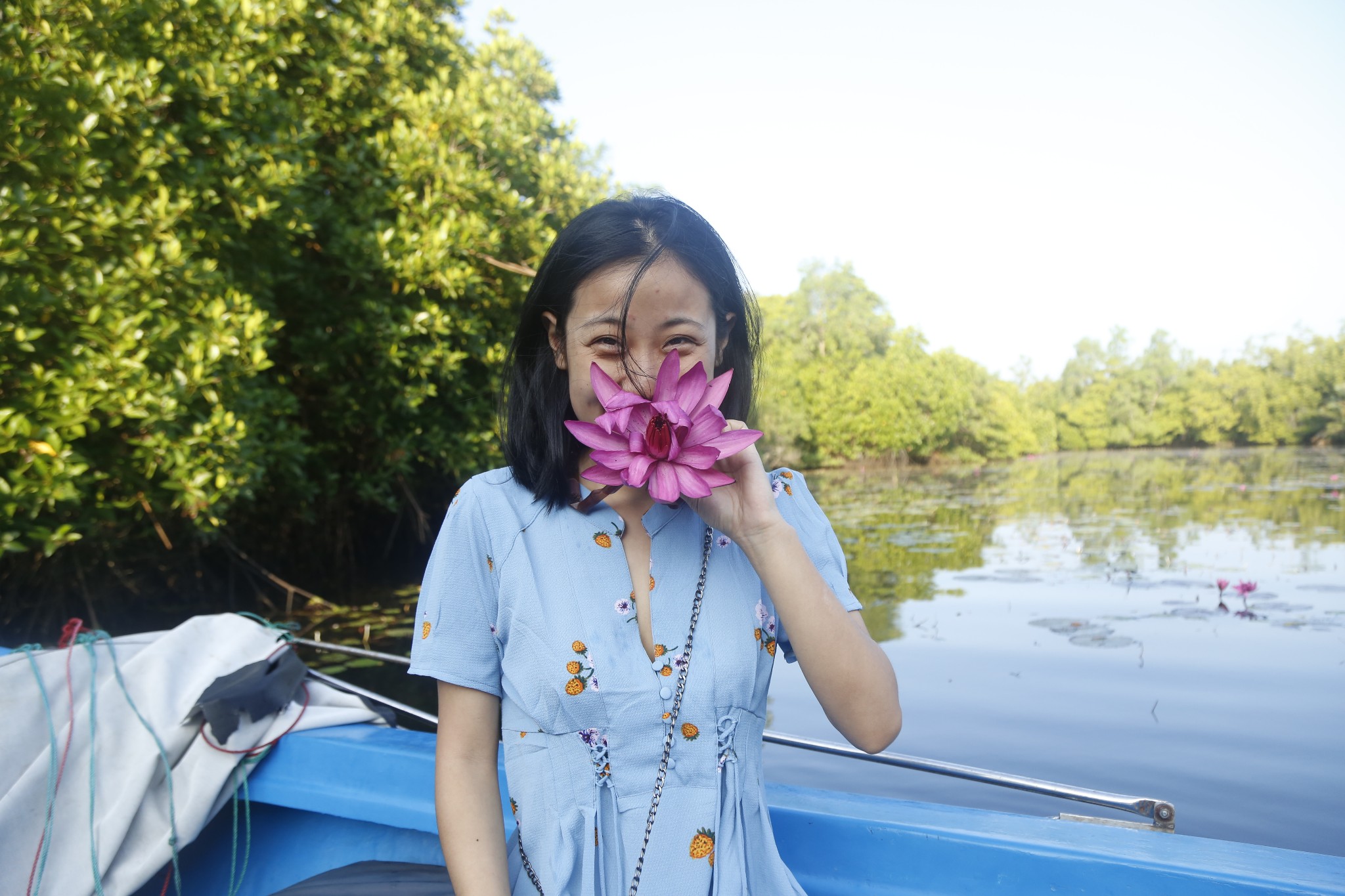 bentota river view男主人有一条船,他问我们想不想游河,2000Rs/人(≈74元),明天早上可以带我们去。我们就定了明早去游河,事实证明是正确的,我们近距离的看到了很多从没见过的生物,他还送了我一条用荷花做的项链,很美好的一段回忆。
