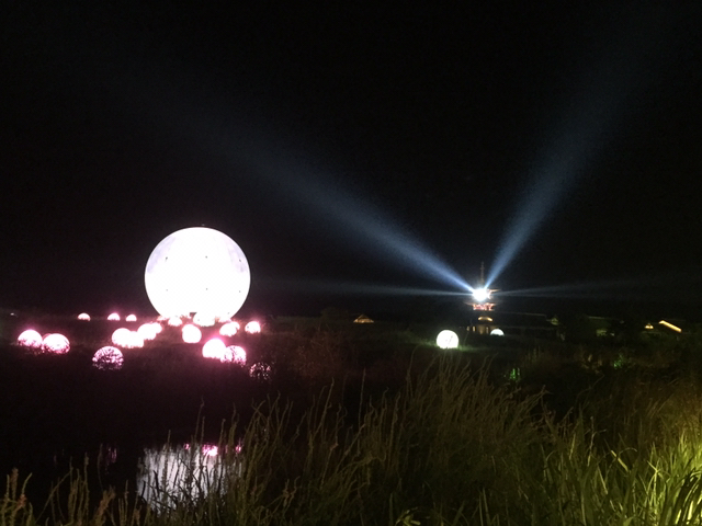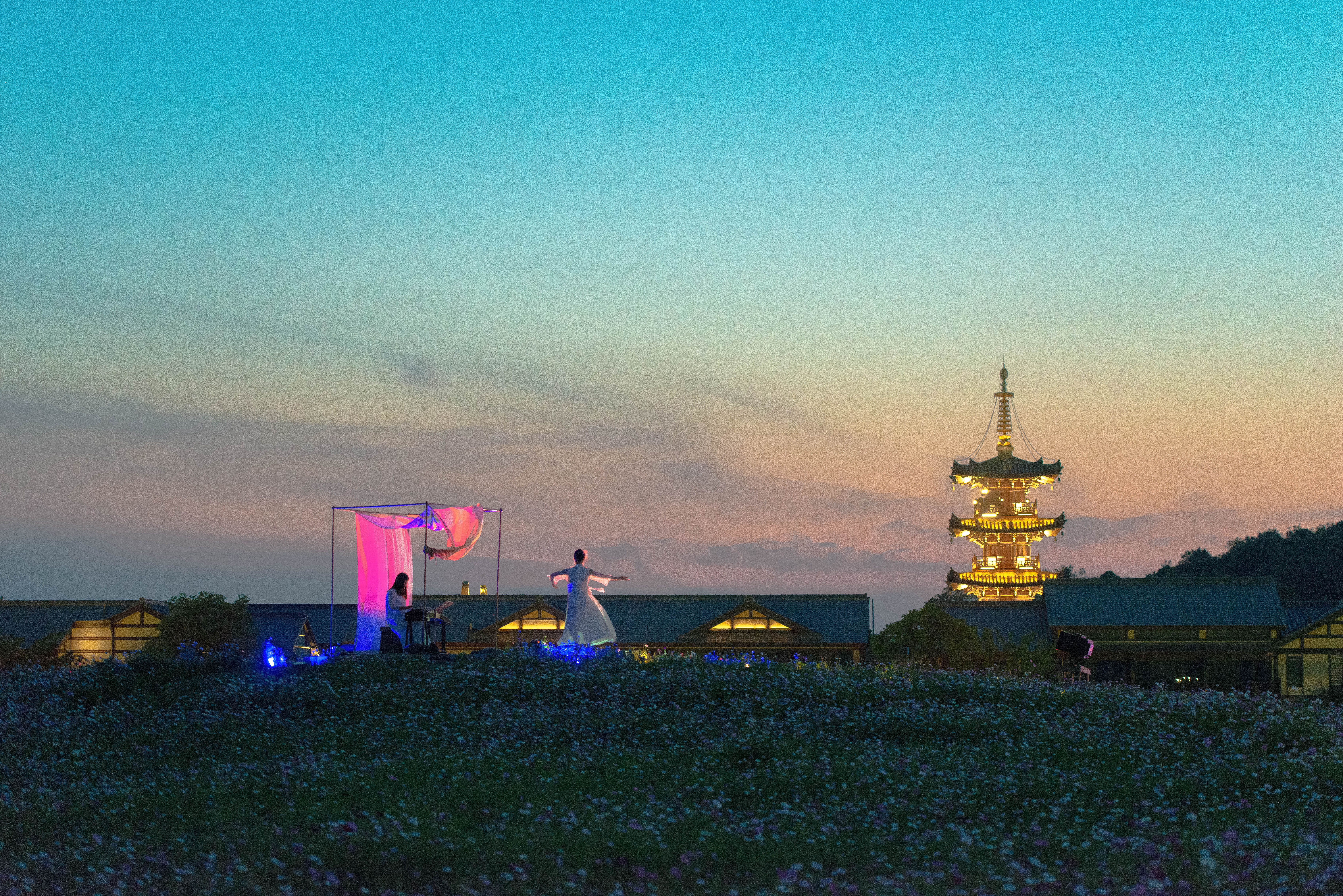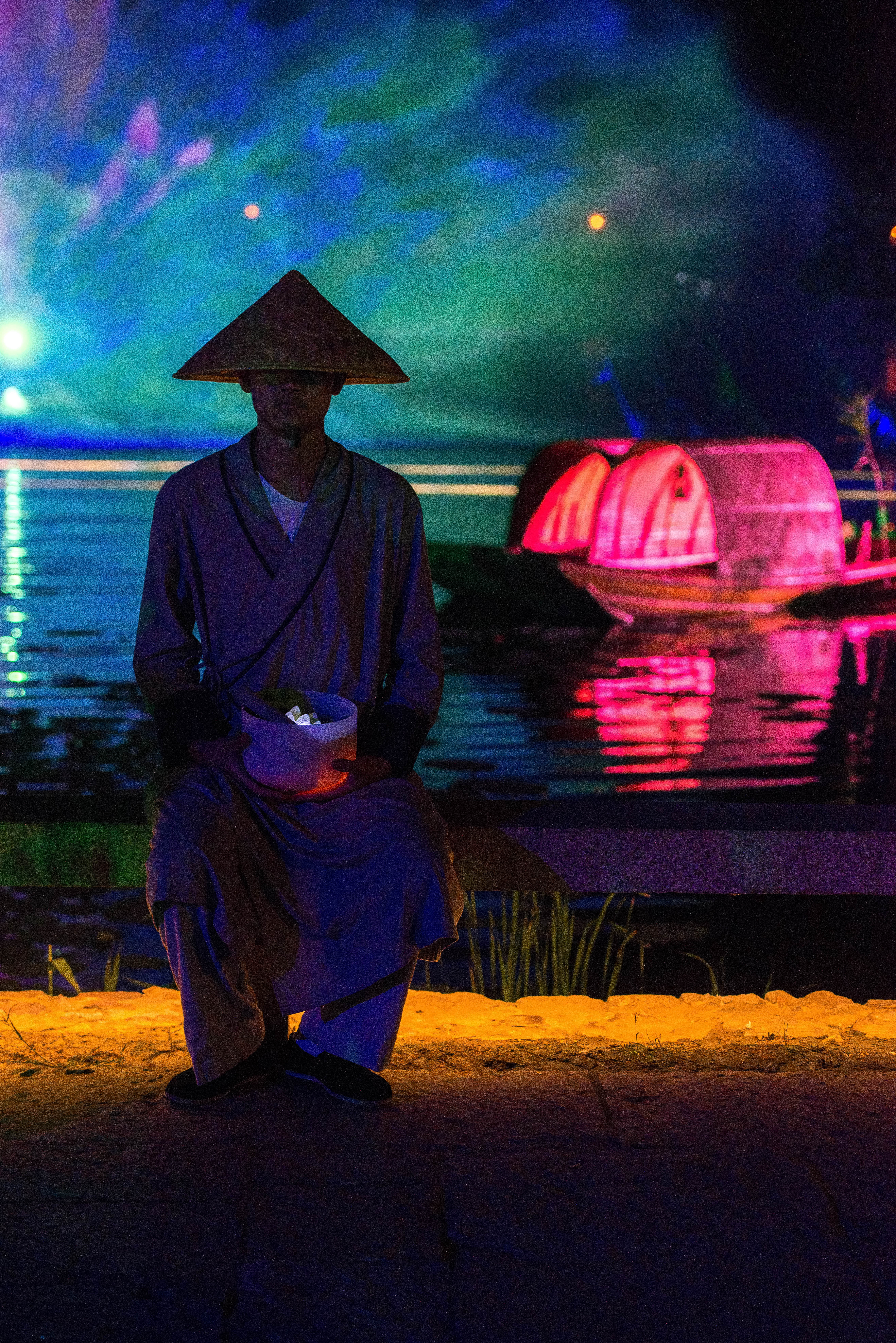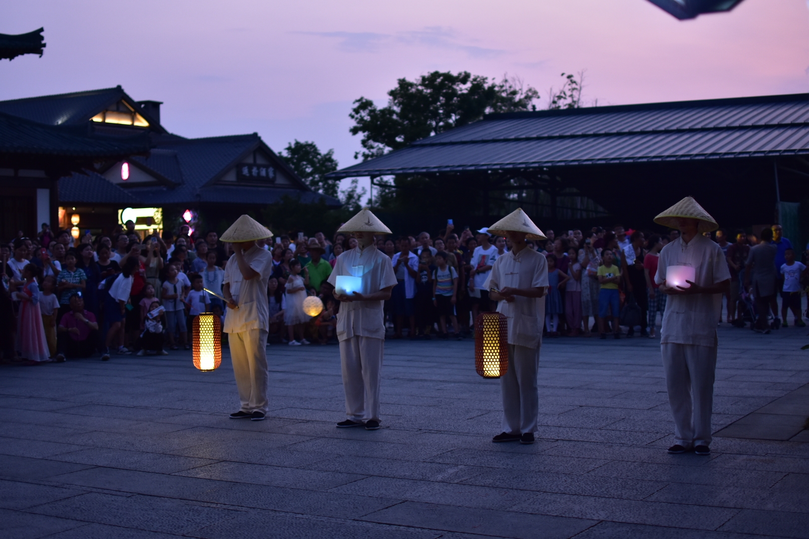 夜晚看灯光秀,在空旷的山谷里,月亮的清辉下,在王菲空灵缥缈的歌声中看舞者翩翩起舞,感受莲叶田田,虫鸣啾啾,凉风习习,月儿圆圆.......很有意境。