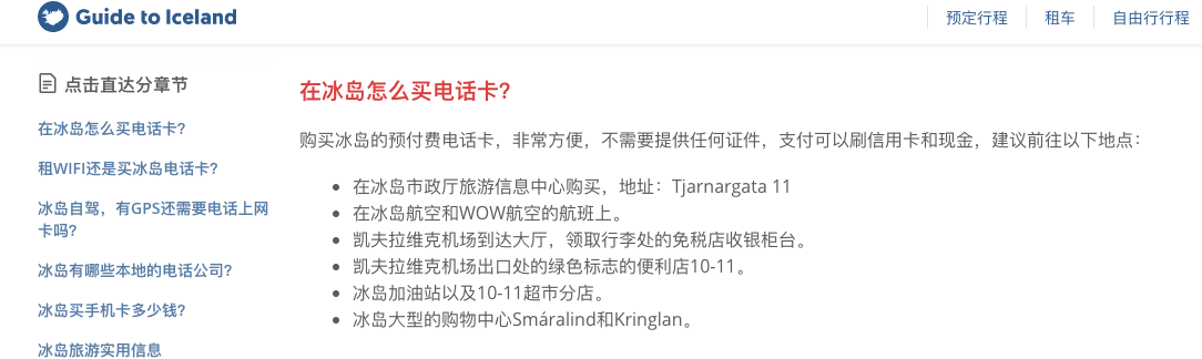来冰岛旅行的话,不论是自驾还是跟团,最好还是都买一张本地的电话卡,这样如果遇到什么情况,还可以拨打本地的一些求助电话。冰岛本地电话卡购买非常方便,不需要提供任何证件,支付可以刷信用卡和现金,下面的地点都是可以购买电话卡的地方:在冰岛市政厅旅游信息中心购买,地址:Tjarnargata 11在冰...显示全部