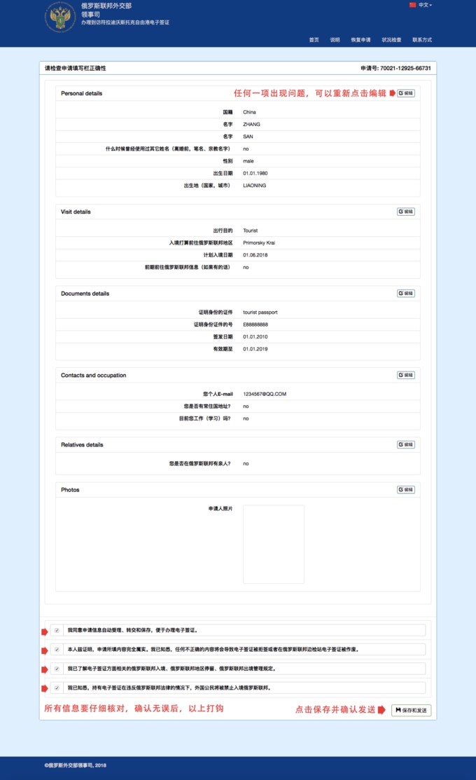 首先只去海参崴是需要办电子签的,但这个签证免费而且三四天就出签,很方便的。【具体操作如下】签证申请网址是:evisa.kdmid.ru网站右上角可选择中文,按照表格把信息填好提交后4天内就可以出签,签证会以PDF的形式发到你的邮箱里,直接打印夹在护照里就OK~但需要注意的是,去海参崴可以...显示全部