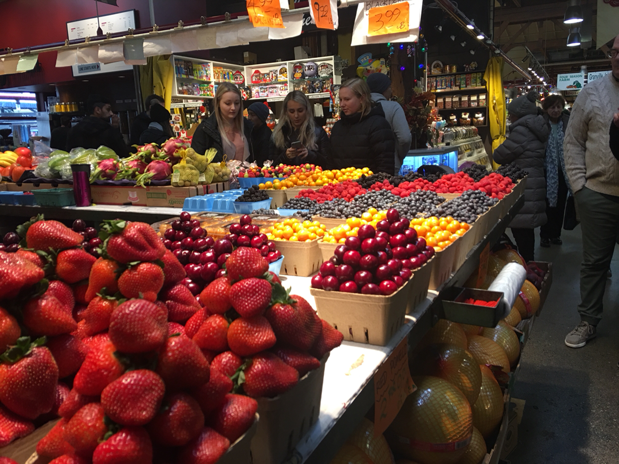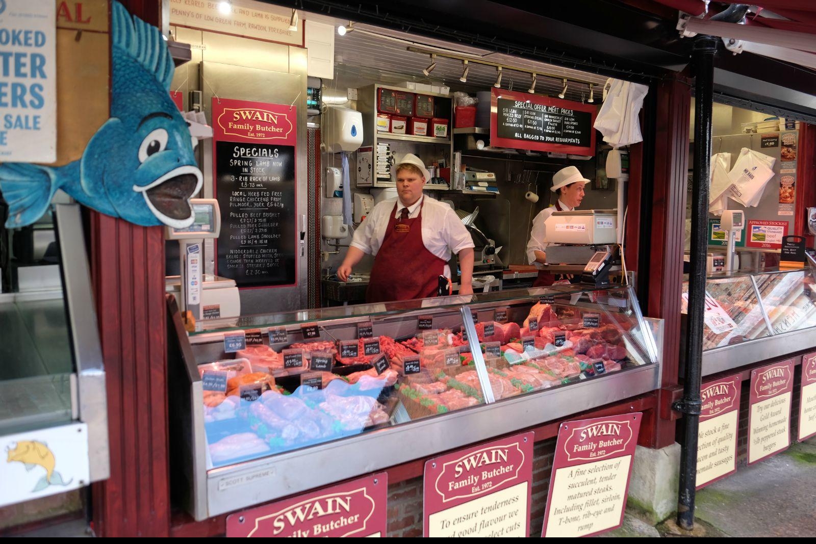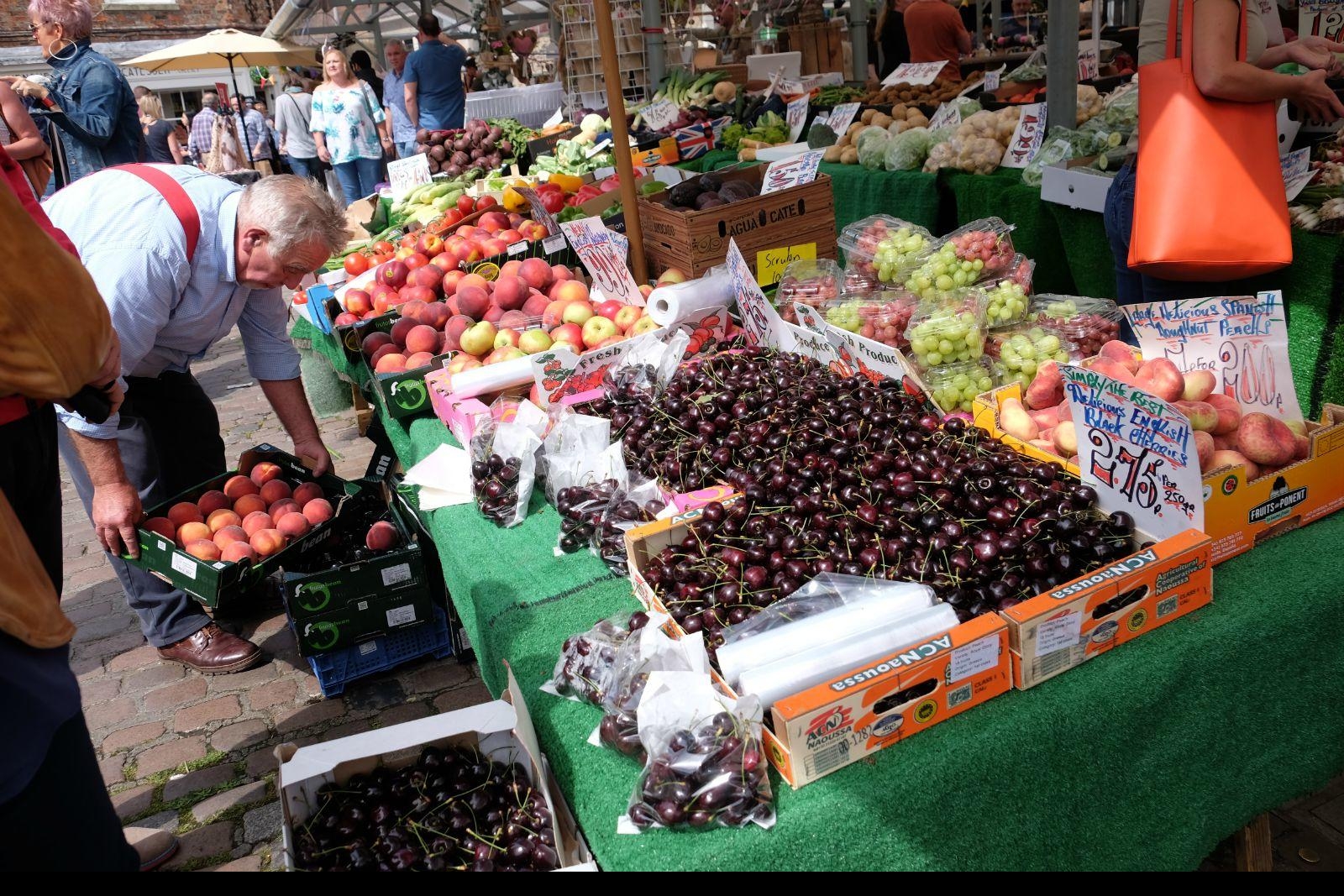 肉铺街集市,地处城中心,其历史可以追溯到公元700年的萨克逊时期。市场规模不算大,占满了肉铺街后面的小广场,蔬菜水果、肉食水产、奶酪制品、工艺品、小商品、园艺装饰、服装服饰、图书海报,还有必不可少的餐饮摊,也算是应有尽有。