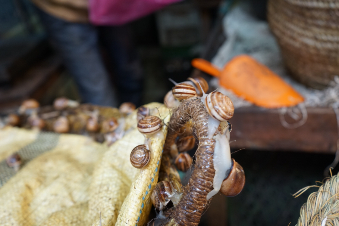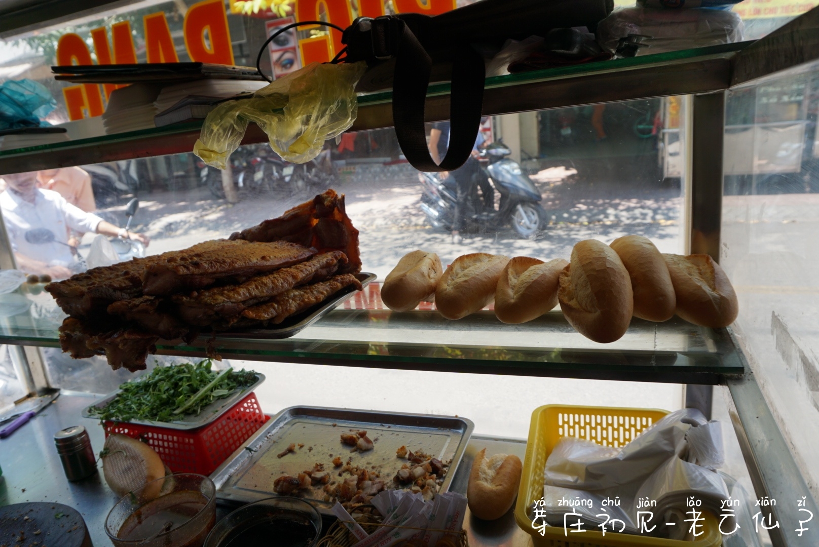集市边的这家店铺里,售卖各种面包和点心。其中那巨大的圆形物件,是什么东西?