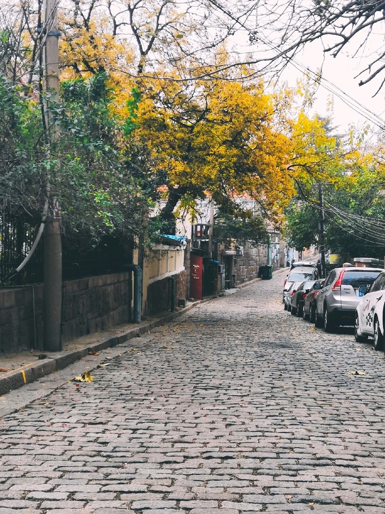 下图:点4黄县路,地上一个一个的小方石做成,叫做“马牙石路”,现在