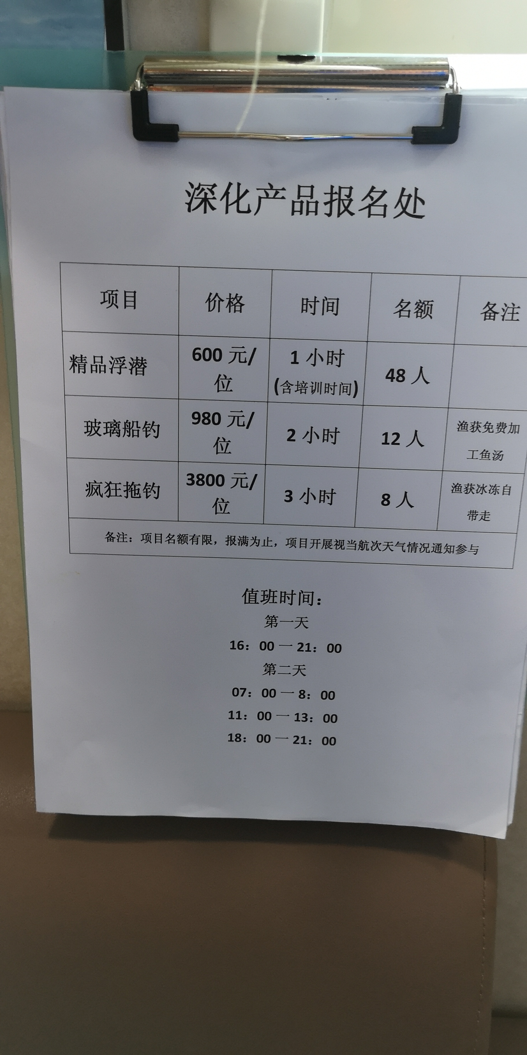 五、自费活动:一是疯狂拖钓,二是海钓,三是浮潜。