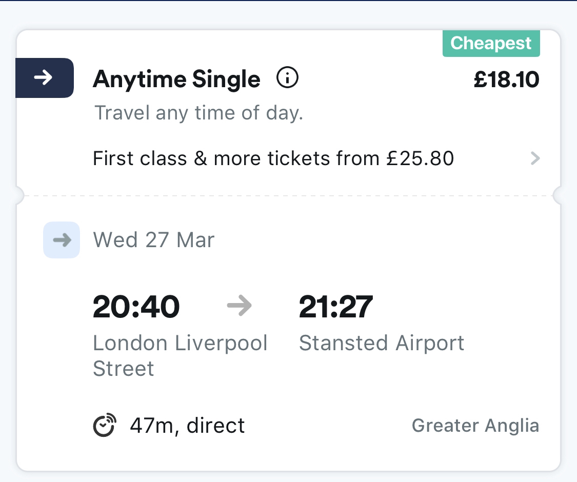 有市区直达的express火车,从Liverpool street station出发,时长1个小时,票价十八镑左右。还有从Liverpool street,Victoria出发的大巴,票价10-13镑左右,时间也在一个小时,但大巴会堵车,如果赶时间的话还是坐火车。========== 如果...显示全部