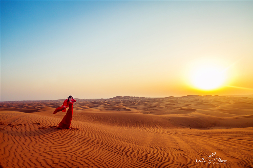 (下图是类似于英雄这部电影里的国风长裙,大大的袖摆和中国风的长裙很适合沙漠的风情)