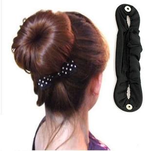 (下图是丸子头在偏低马尾处,不完全收拢)