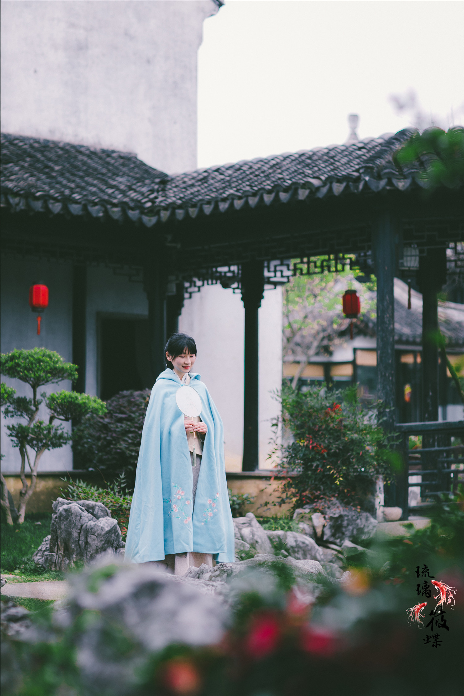 (冬日穿国风的衣服可不能冻着自己,选择一件厚实的斗篷即可。)