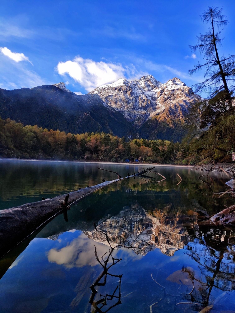 第二天上午可以去木格措游玩半天(也可不去,木格措现在路况不算太好),下午动身到新都桥,正好下午的夕阳光影也能看到,晚上住新都桥。如果时间富余,建议去贡嘎雪山观景平台、居里寺、营关村湿地公园走走看看,秋天青稞黄了收了一路风光非常优美。
