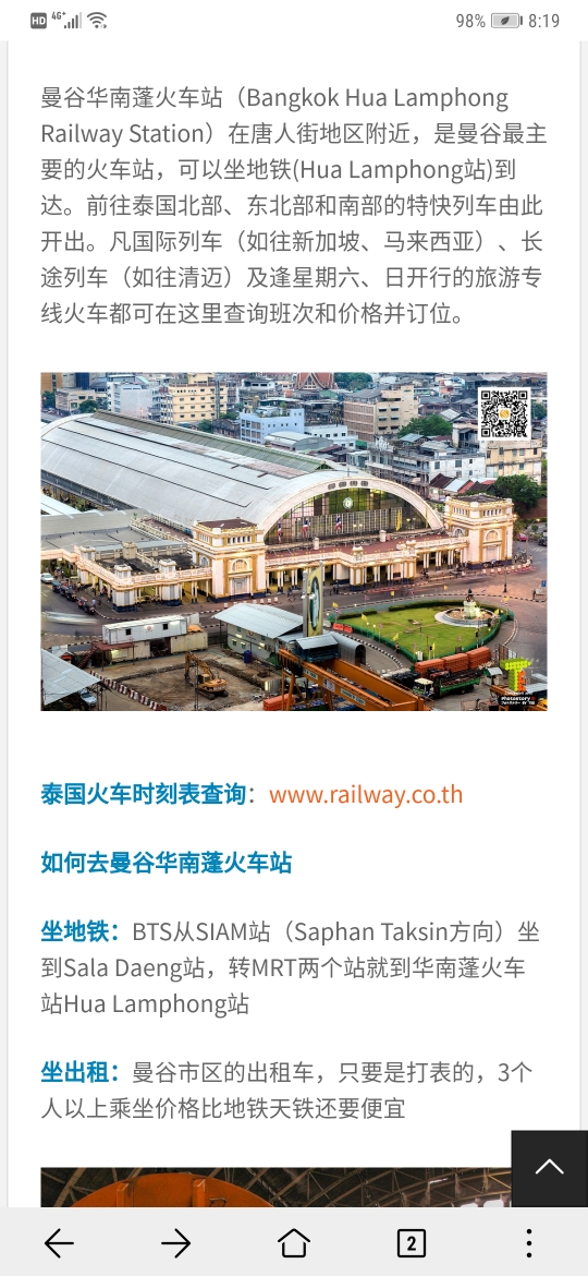 我是坐汽车去的1.曼谷廊曼机场T1航站楼,跟着指示牌,从6号口坐A1机场大巴到Chatuchac站或Mochit站,30泰铢一人2.打grab到SombatTour汽车站,汽车票是241泰铢一人,官网买的sombattour.com,买票时没有英文版只有泰语版,可以翻译着买,sombat汽车很...显示全部