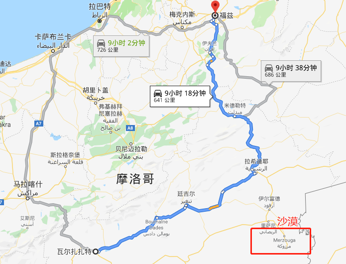 Google地图显示并不过经过沙漠的腹地Merzouga,应该如果走到Merouga就有点绕路了。当然你们自驾的话,也可以专门绕到Merzouga去,因为其实一般是会在沙漠那边住一晚的 。========== 如果你觉得TA的回答不错,快来给TA点个赞吧! 你的支持是对作者莫大的鼓励~显示全部