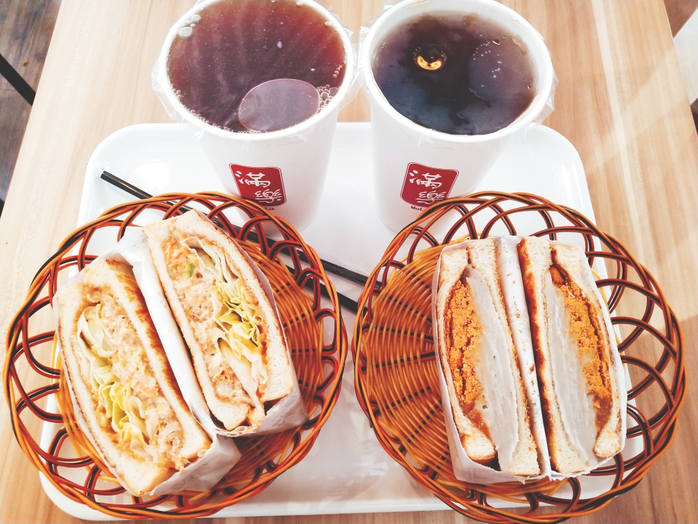 特地去了一家三明治餐厅叫“滿樂”实在小巷子里的,五六十平方人很多,差不多排了半小时才拿到餐,三明治口感确实不错,味道很丰富,我吃的是左边一款鲔鱼沙拉的比右边芋泥的好吃,个人口味哈,只做参考。