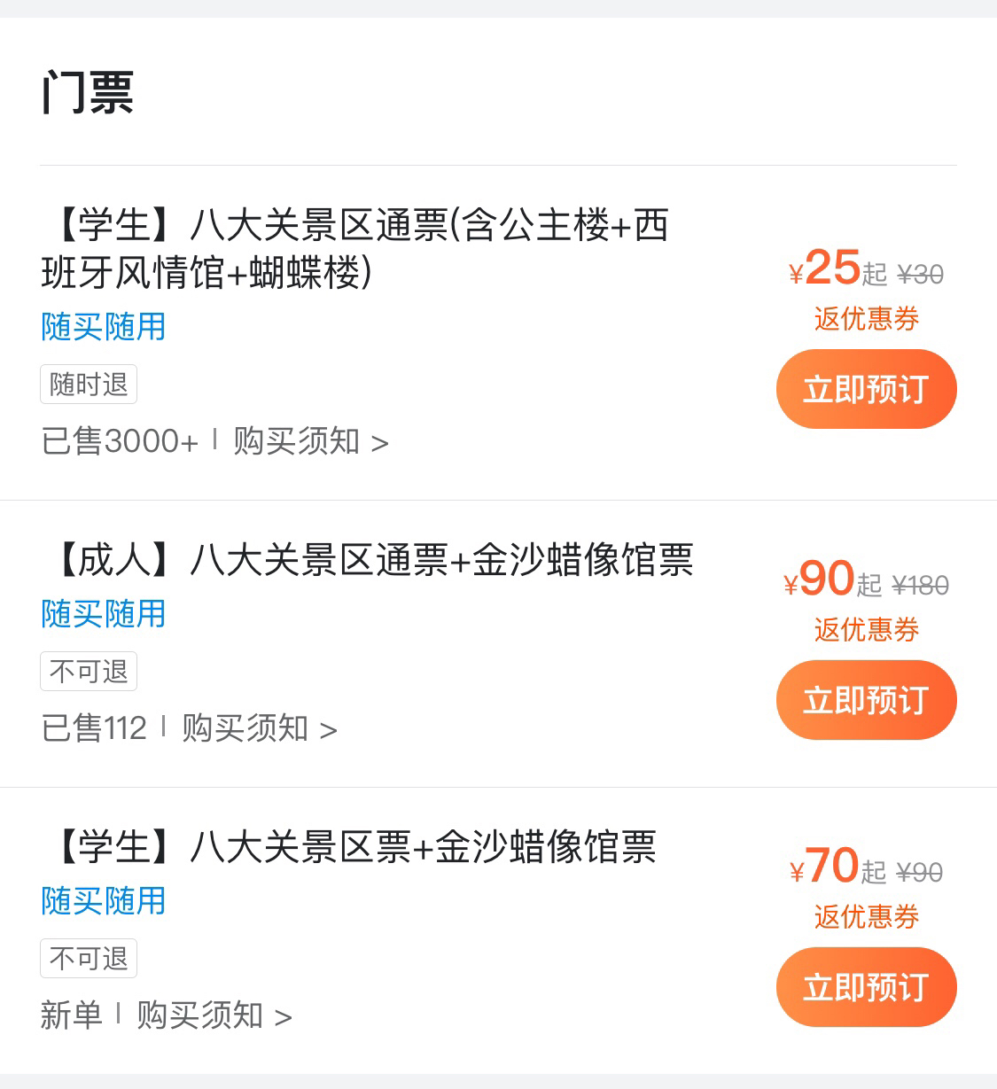 个别景点才需要门票,当场买就可以了,也不贵的,最好还是不要相信票贩子吧,景区不收门票,随便欣赏,不让进的就不能进了========== 如果你觉得TA的回答不错,快来给TA点个赞吧! 你的支持是对作者莫大的鼓励~显示全部