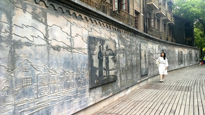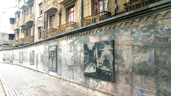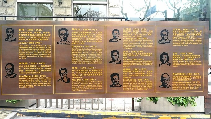 名人墙上刻有茅盾、沈尹默、叶圣陶、郭沫若、丁玲、鲁迅和陈赓等人与 多伦 路相关的浮雕。