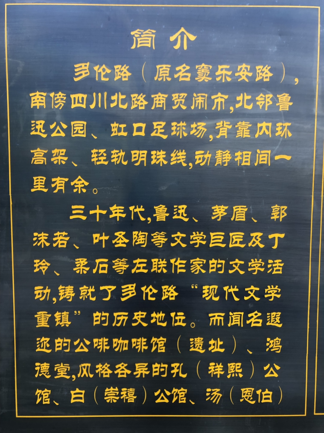 多伦路虽不长,但还是值得慢慢逛的地方。特别是路边的那些栩栩如生的街头铜像向你描绘着当时文人的风采,那些故居遗址向你讲述着那个时代的故事。