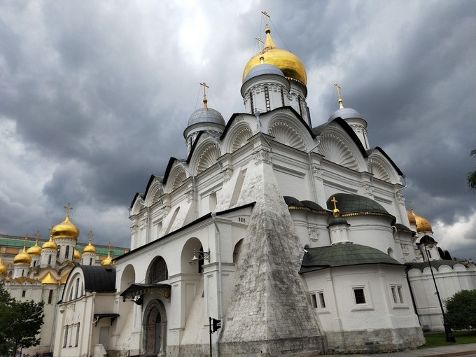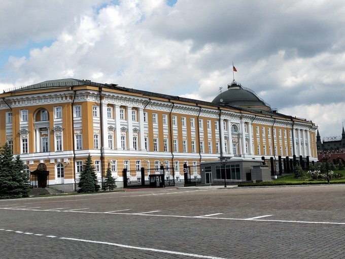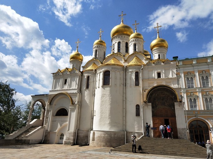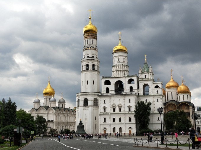 的心脏地带,总统府的所在地。目前可以参观的主要建筑包括兵器博物馆、牧首宫、大教堂广场、伊凡大帝钟塔等。从红场就可以看到克里姆林宫 的那一圈红色宫墙了。入口在西墙外的库塔菲娅塔楼,需要安检。进去后要走一小段斜坡才能进到宫墙里面。