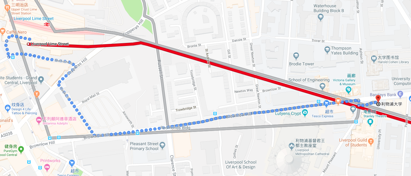 [题主采纳]从希斯罗机场搭乘地铁Piccadilly线前往Green Park站Green Park站搭乘地铁Victoria线前往伦敦Euston地铁站从Euston地铁站步行前往Euston火车车站乘坐列车前往利物浦Liverpool Lime Street车站。步行12-15分钟前往利物浦大学===...显示全部