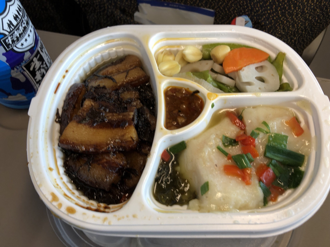 我点过一次,试了下水所以才有发言权。那是去年过年回家第一次点,也是我平生第一次真心感受到什么叫一票难求!在那个到处飞雪的日子,窗外狂风怒号,车内温暖如春,中午一扫坐位边的二维码,热腾腾的米饭就来了,还是宫爆鸡丁,土豆丝等,一份才25元,不算贵,味道还凑合,也不是传说中的多难吃,只是肉少了点,素...显示全部