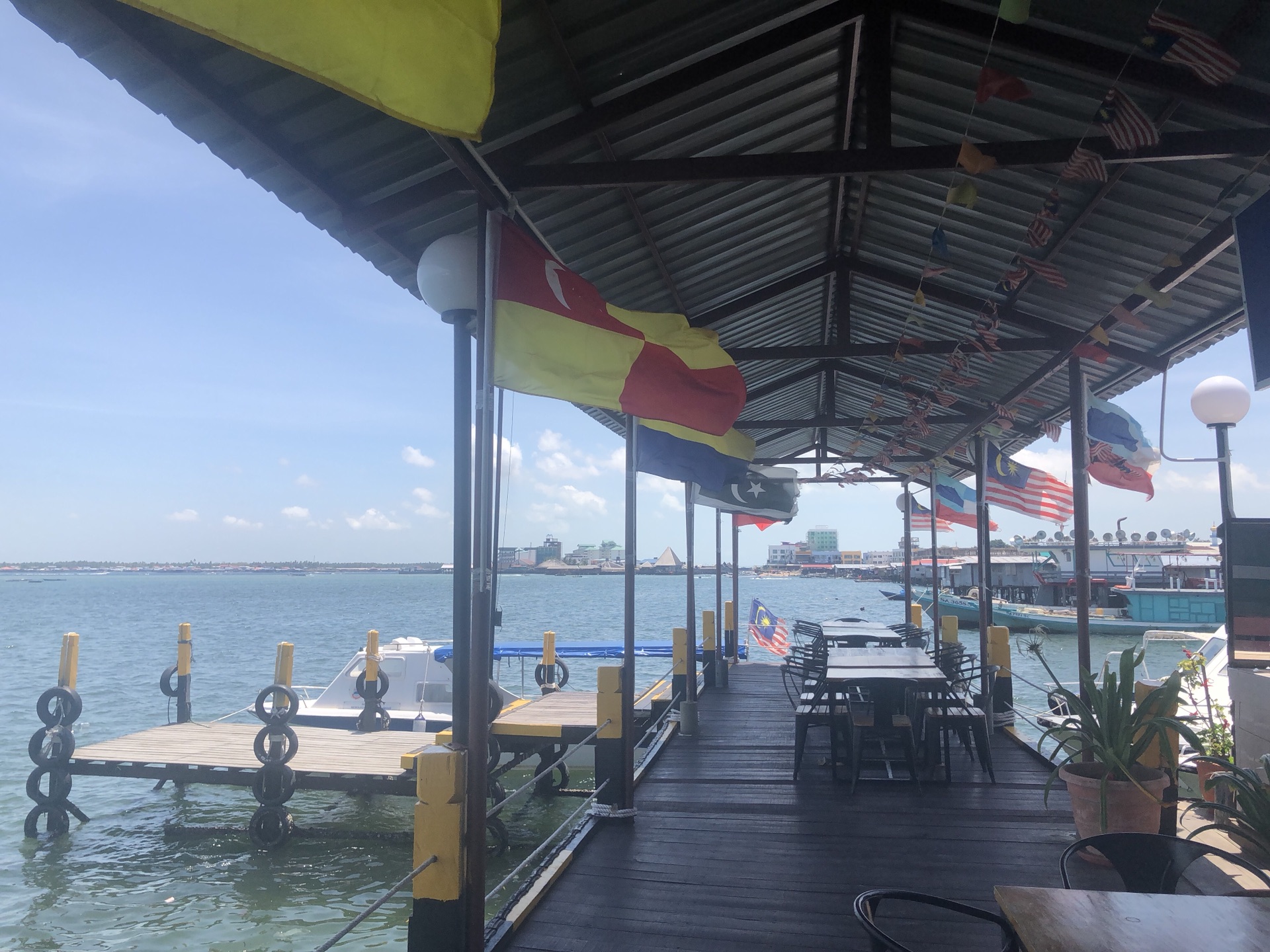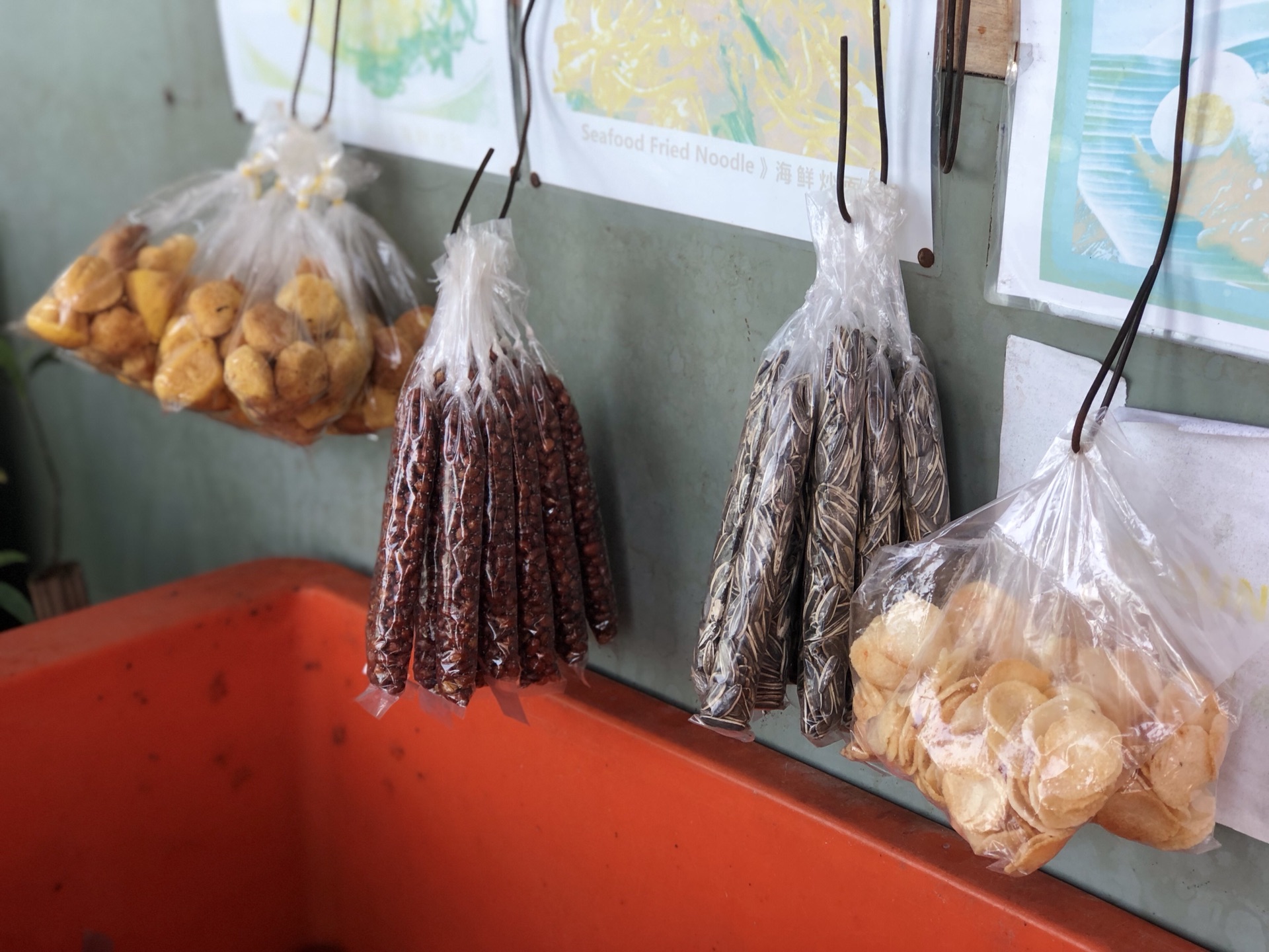 当时订海岛时有说不能带食物,所以都没带。码头这里的食物没买,没爱吃的。