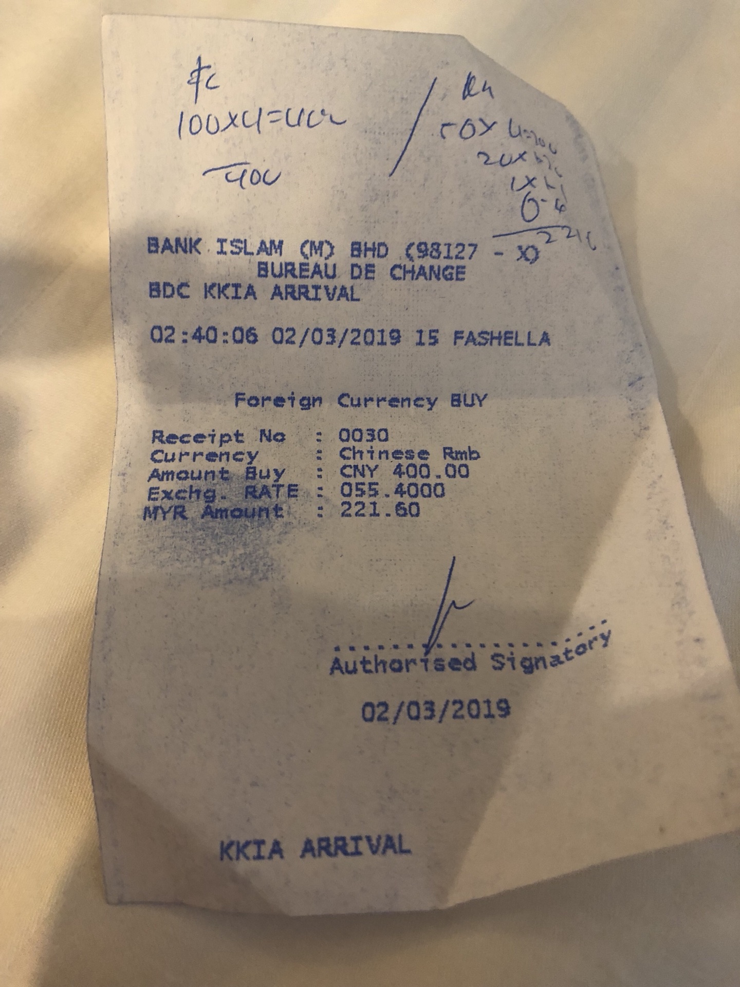 国际机场到达 机场时已经凌晨2点,先兑换了400元人民币,汇率真的不咋样,但是由于grab必须付现金,没办法。