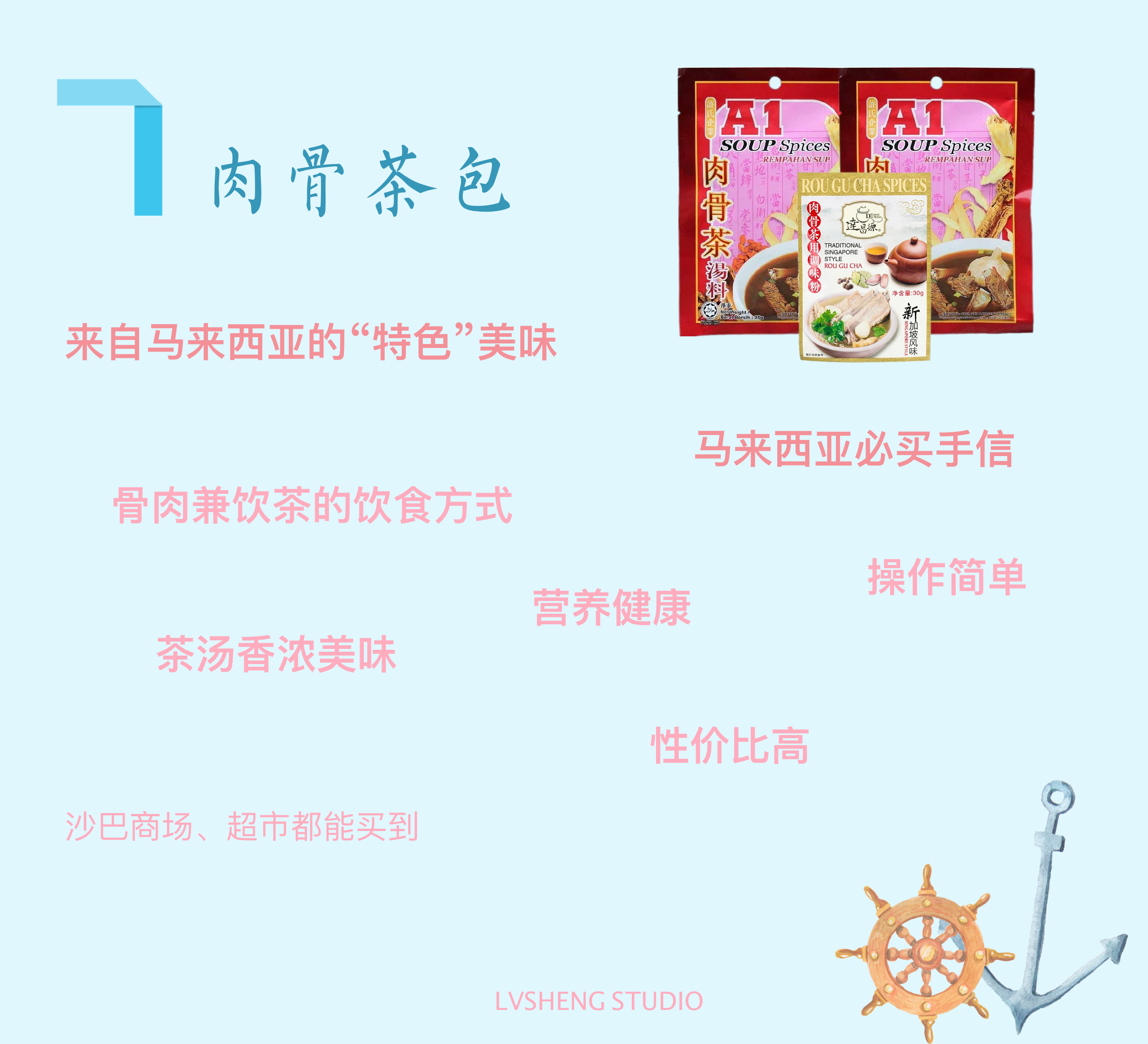 题主可以买肉骨茶包回去,回家自己做一顿饭,都是很不错的选择。价格便宜,而且营养丰富。小小的一包茶包也是很方便携带的。不过肉骨茶包有的是有胡椒的,如果题主介意胡椒,买的时候多看一下配料就OK了。
