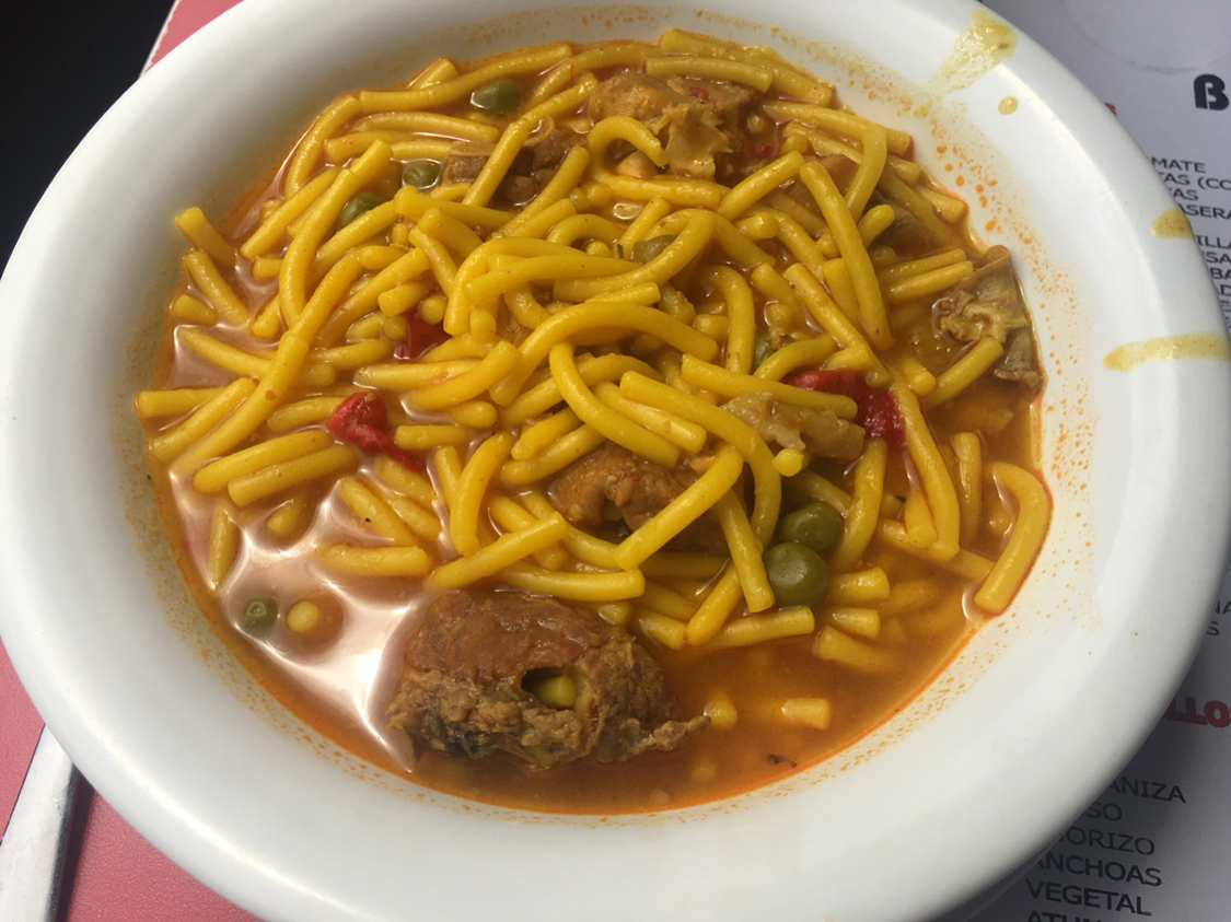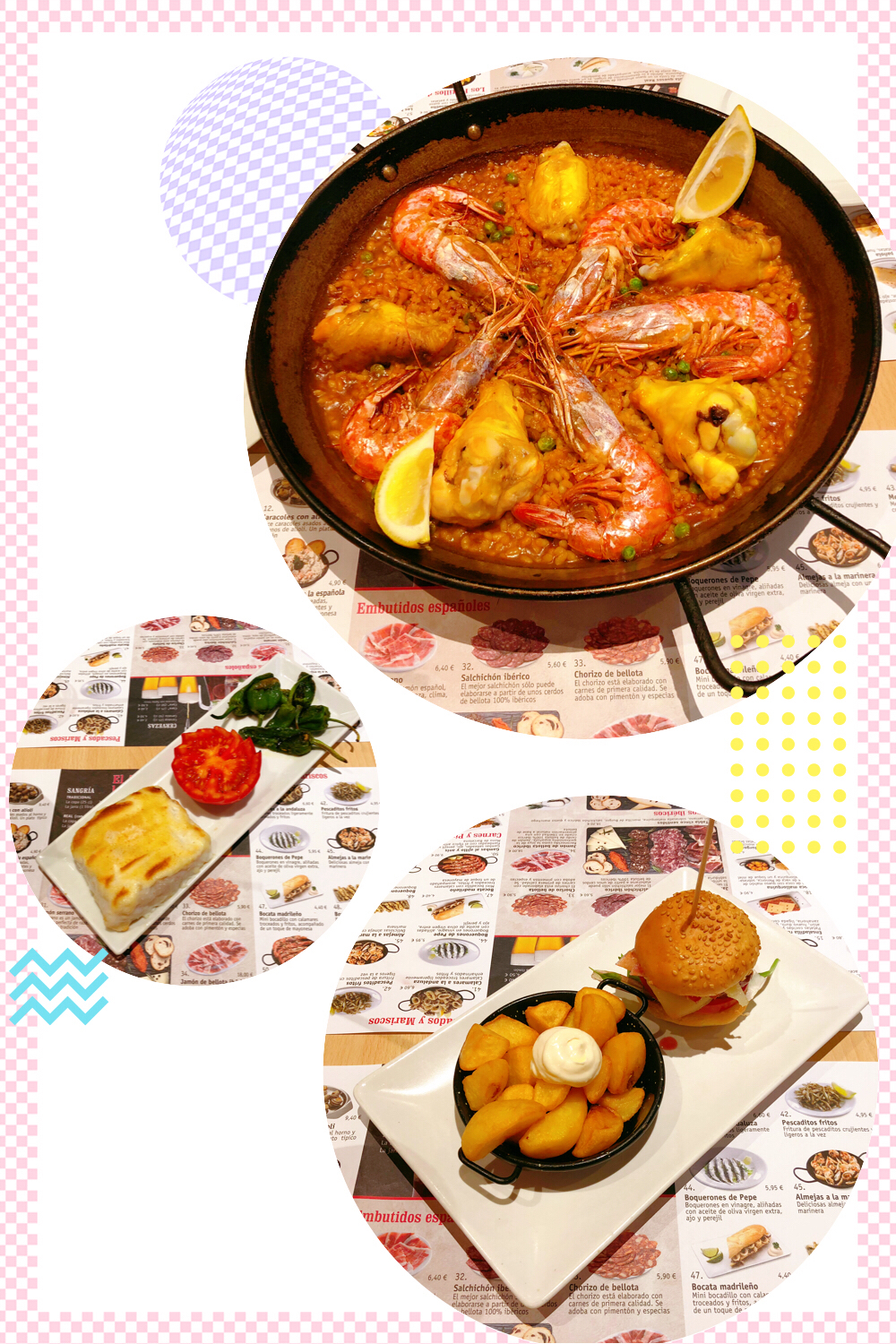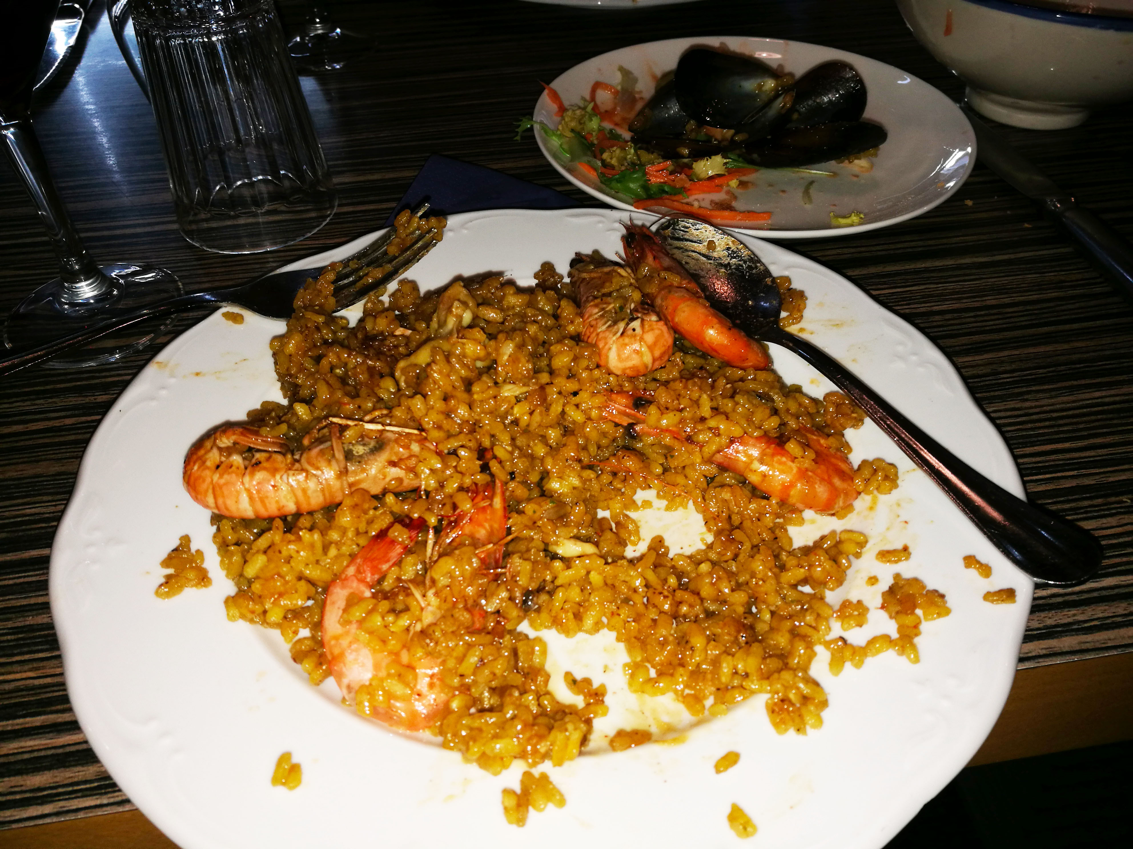 的一道名菜,米饭的橙黄色来自藏红花,其中点缀各种海鲜,虾、贝、鱿鱼,还有西红柿和彩椒,配上