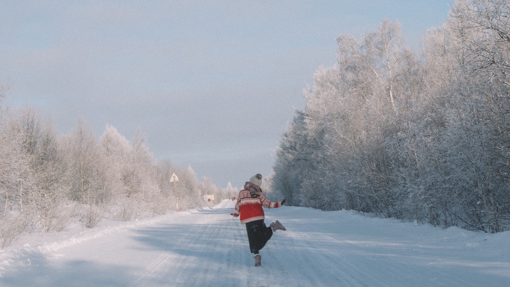 南方姑娘这个时候还是处于一个兴奋的状态,看到全是雪的路面简直忍不住的蹦蹦跳跳。拍照片连拍来一遍,相机录视频来一遍,手机录视频再来一遍。于是。。。。我在这里摔了个大马趴。。。。。把摔跤视频分享到朋友圈之后,居然有人说我摔成了平胸??!?!?