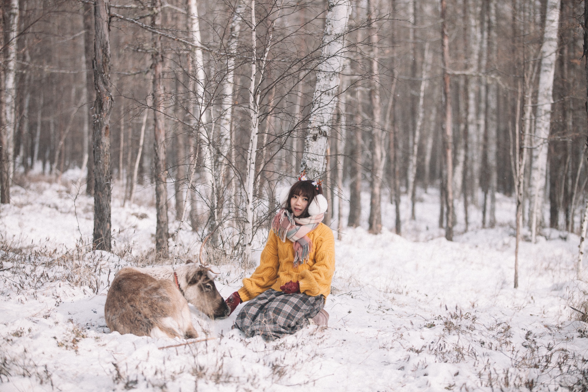 虽说这里有零下10几度,但是刚刚从南方过来的孩子居然丝毫都感觉不到冷,穿着毛衣就在雪地里白桦林里放开了撒欢。