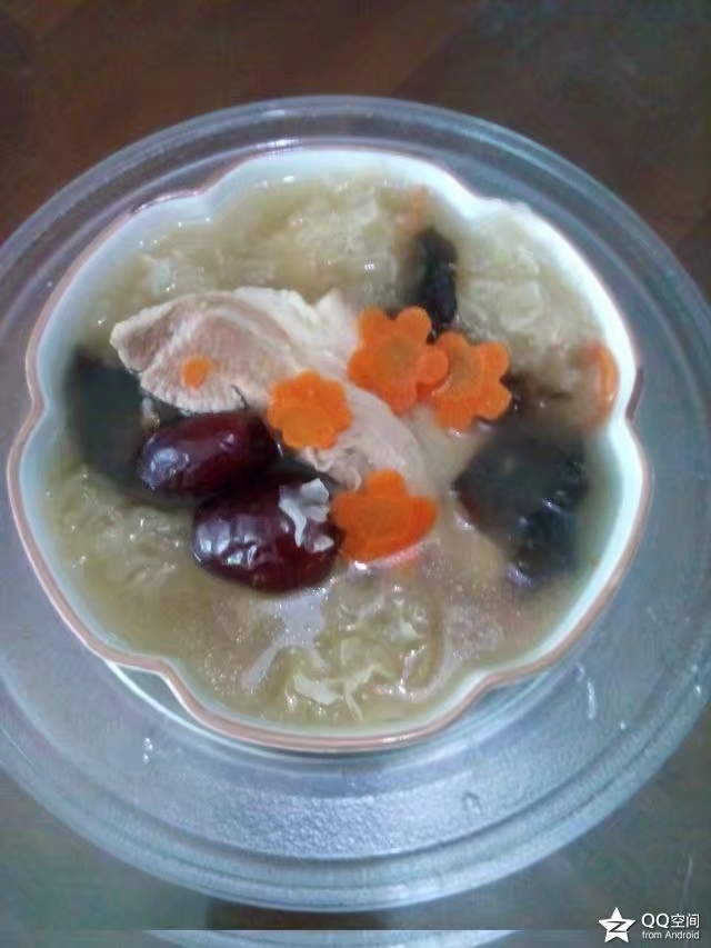 双耳猪肉汤:黑木耳具有滋养、清肺、润燥之效,白木耳具有生津润肺、滋阴养胃、益气活血的作用,两者合食可清肺润燥、止咳化痰。搭配瘦猪肉可增加动物蛋白,提高营养价值。