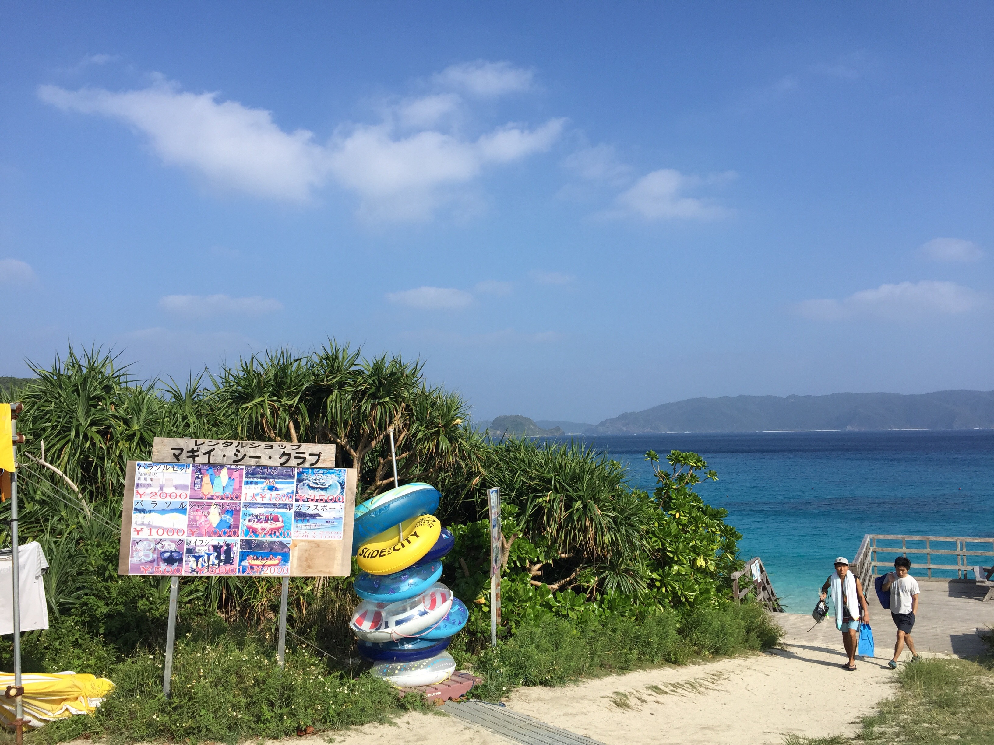 岛我也有去过,那边港口离海滩比较近,不过走路也是要花上20~30分钟,七月份太阳很晒,带小孩可能会很辛苦。一样是报名店家的水上活动才会有免费接驳车。不过之前走路到古