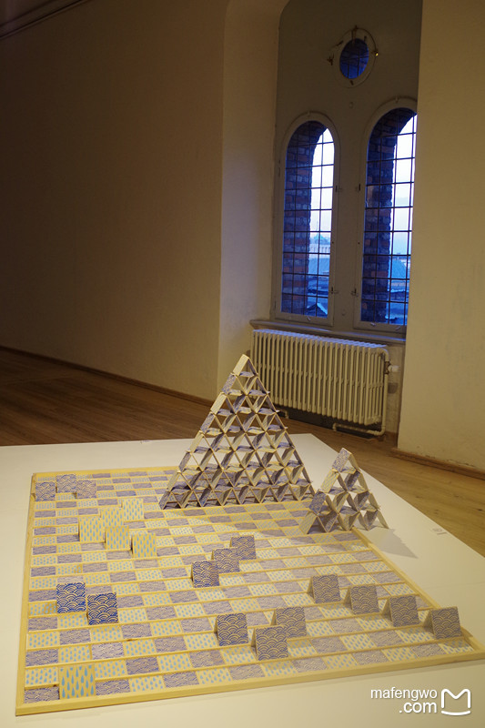 远眺 王者风范 气象万千圆塔二层是一个现代艺术展,素白的光线,简洁的布置,前卫的理念 和圆塔外观的古典风格相映成趣。