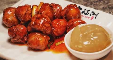 地方特色的小吃之一。具有天然、营养、保健的美食特色,鱼肉当成泥当鱼丸皮,里面包肉馅,口感好,吃起来非常筋力,它不像超市卖的那种吃起来都是淀粉,这种鱼丸久煮不变质,松涨率好,色泽洁白玲珑晶亮,质嫩滑润清脆,富有弹性,味道鲜美,具有特殊的海鲜风味。