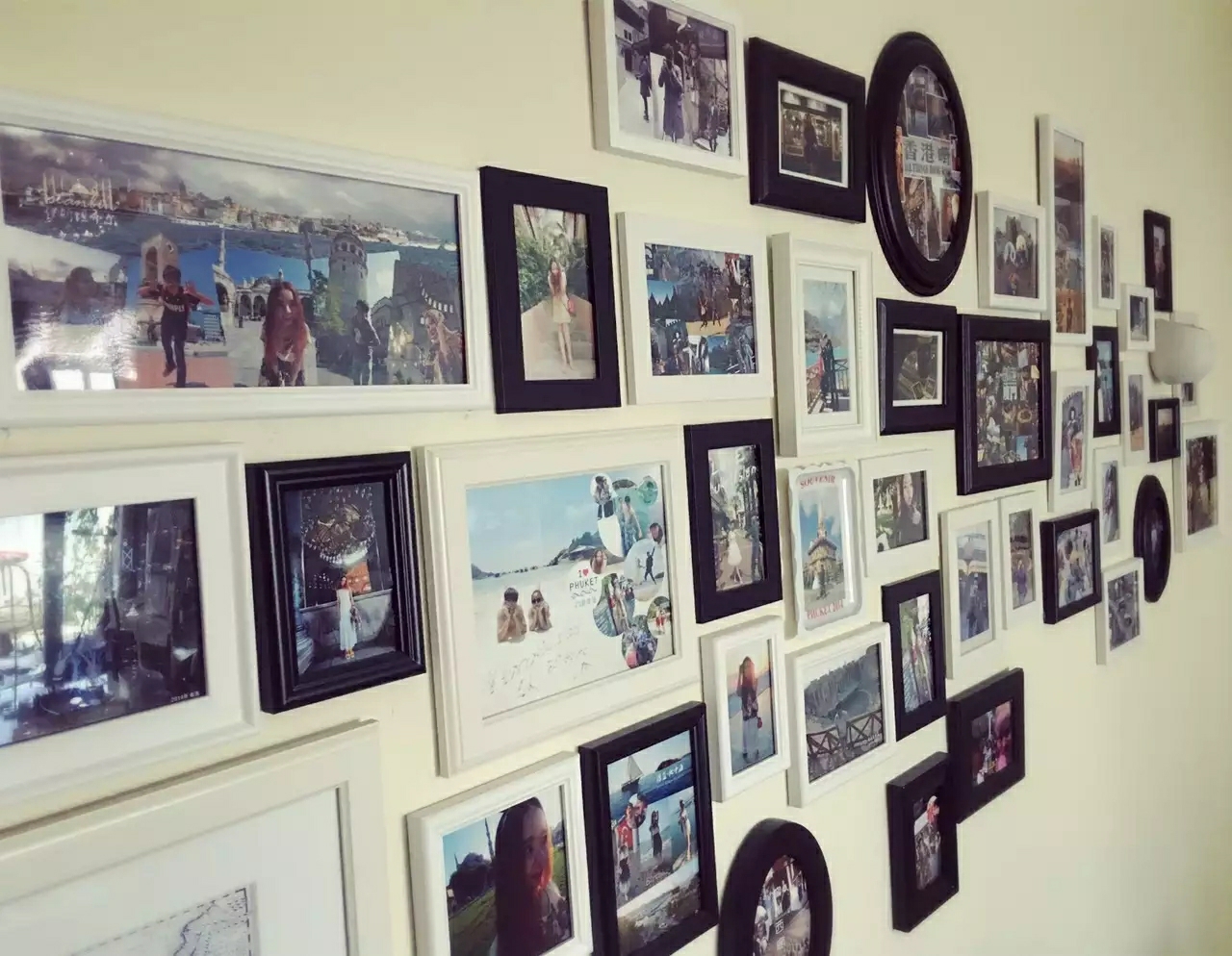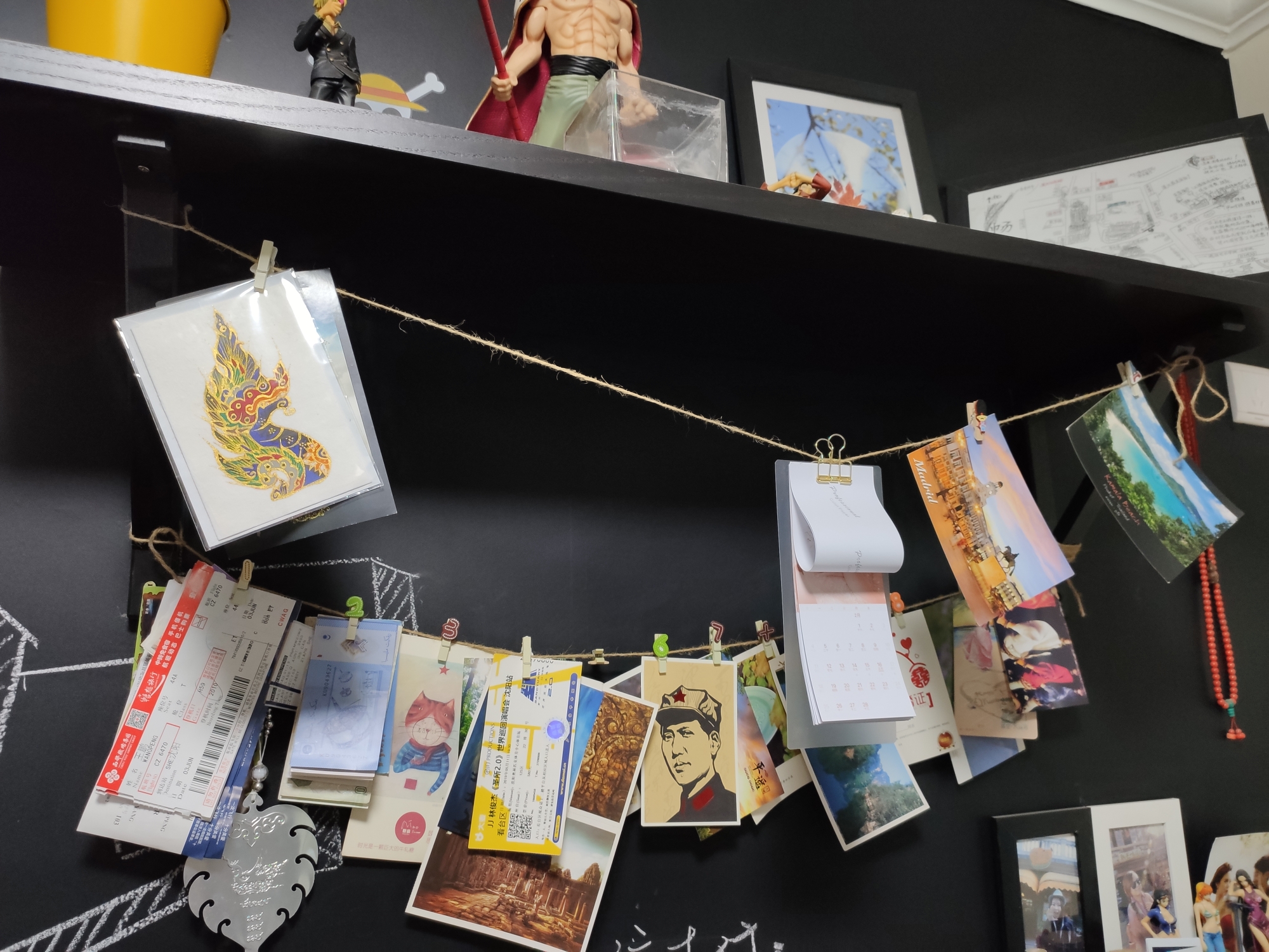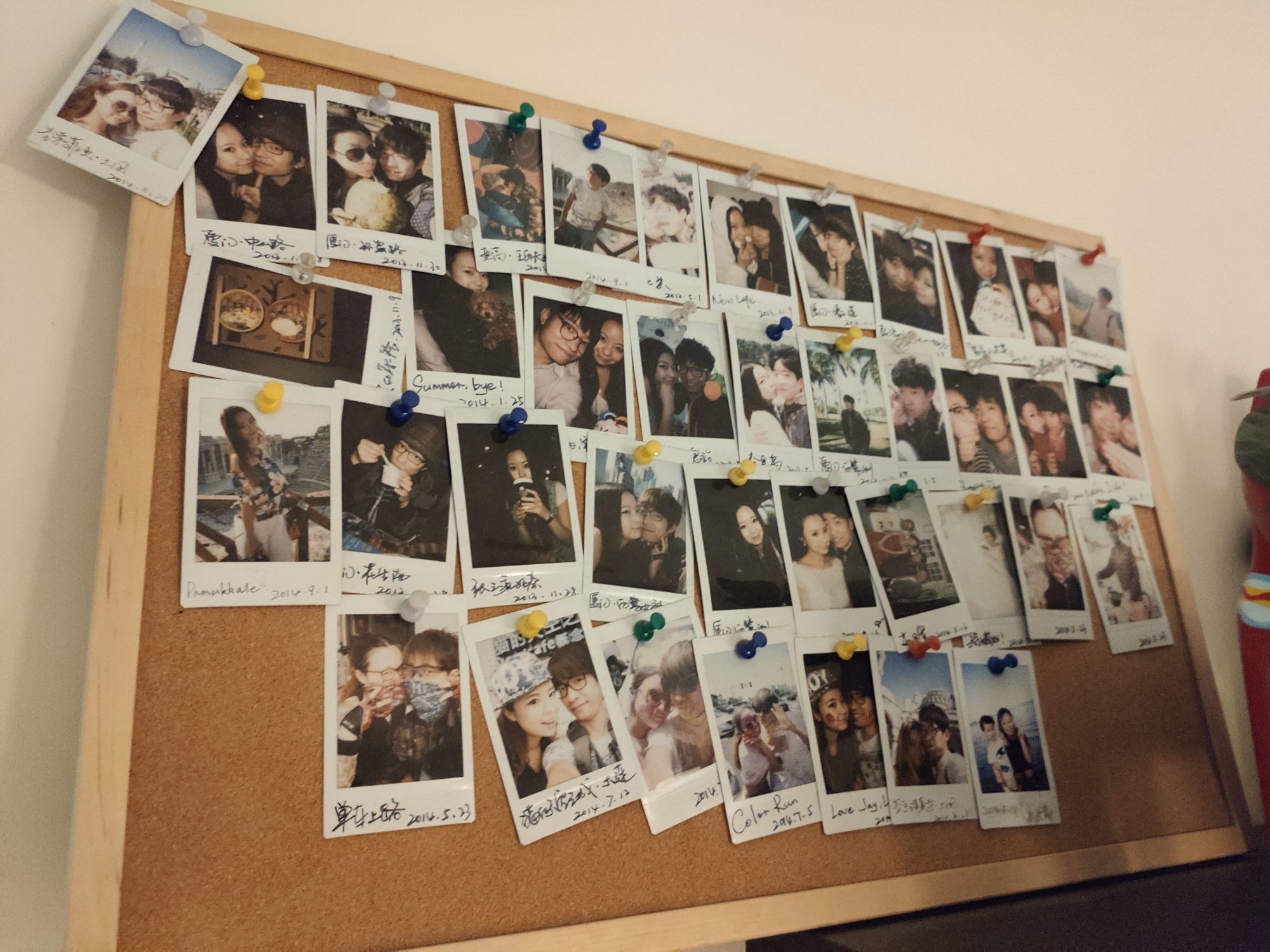 再有就是一些照片了,会用拍立得拍一下回来写上日期和地点,也会把好看的照片做成一张合体照片写上日期地点,挂在我家的照片墙上,对了我家还有一个地图墙上面也会贴上如果地方的大头贴。
