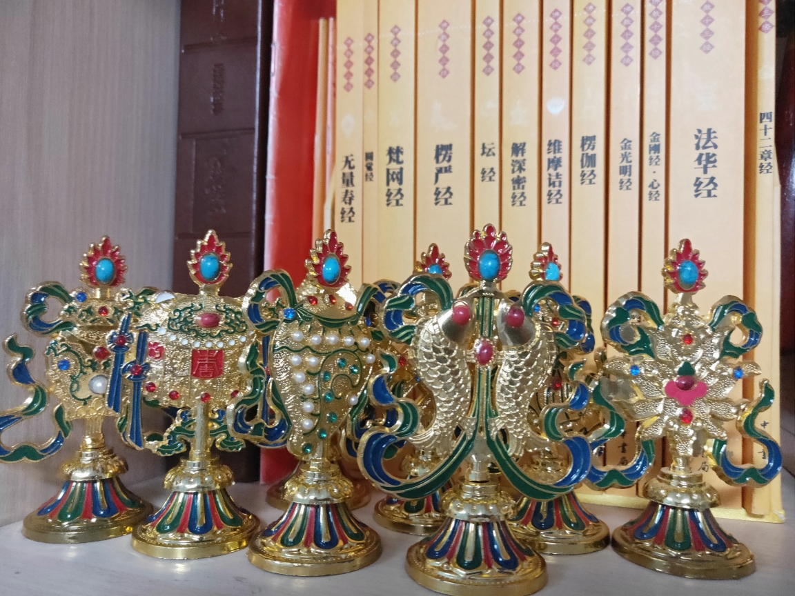 图1 藏传佛教八吉祥,因为蒙古族也信仰藏传佛教,八吉祥在内蒙及藏区随处可见。在锡林浩特贝子庙看到这个忍不住买了。