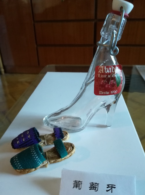 葡萄牙:小酒瓶(内装的葡萄酒已经喝掉!)及老奶奶手工编制小鞋