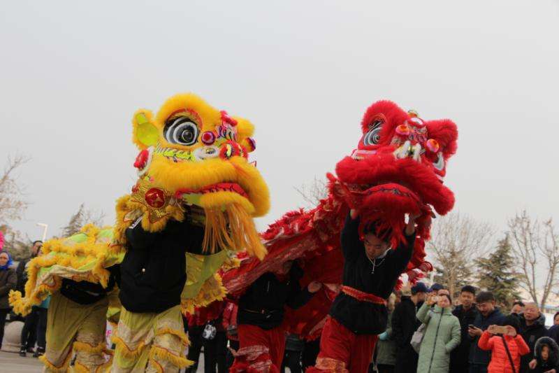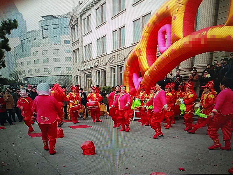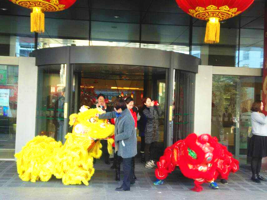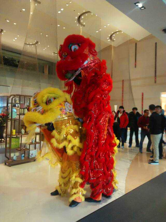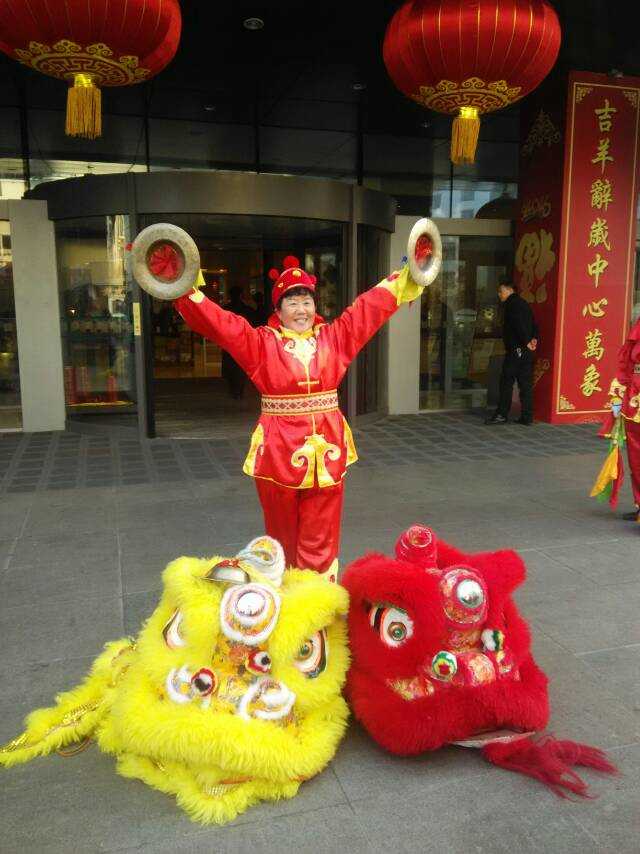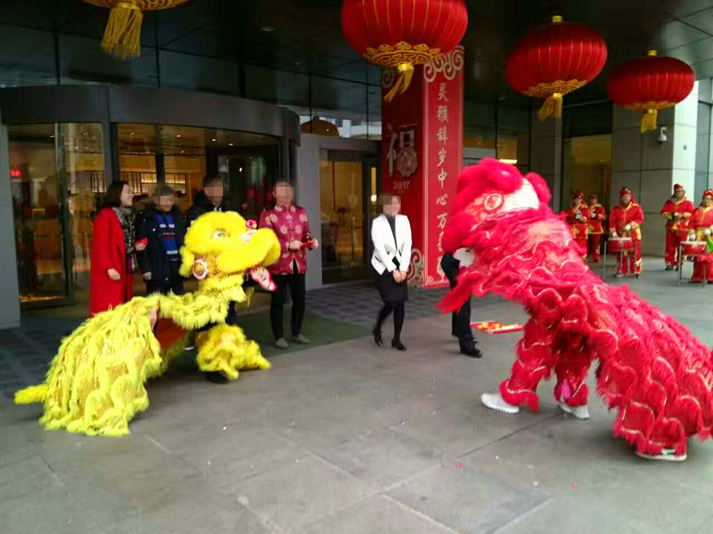 新的一年开张请舞狮锣鼓,要给狮子点睛、狮子要抓菜(寓意开张大吉、发财的意思)