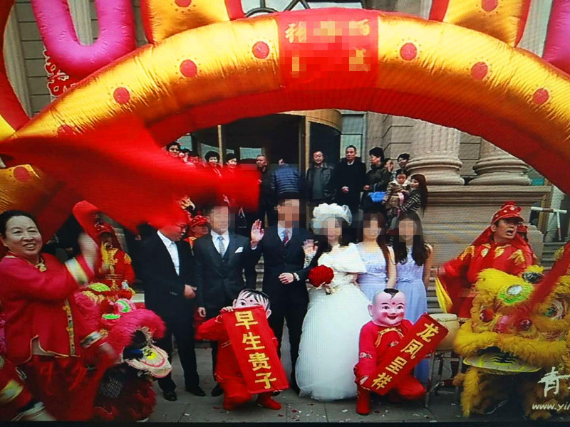年轻人结婚大都也请舞狮锣鼓图个喜庆