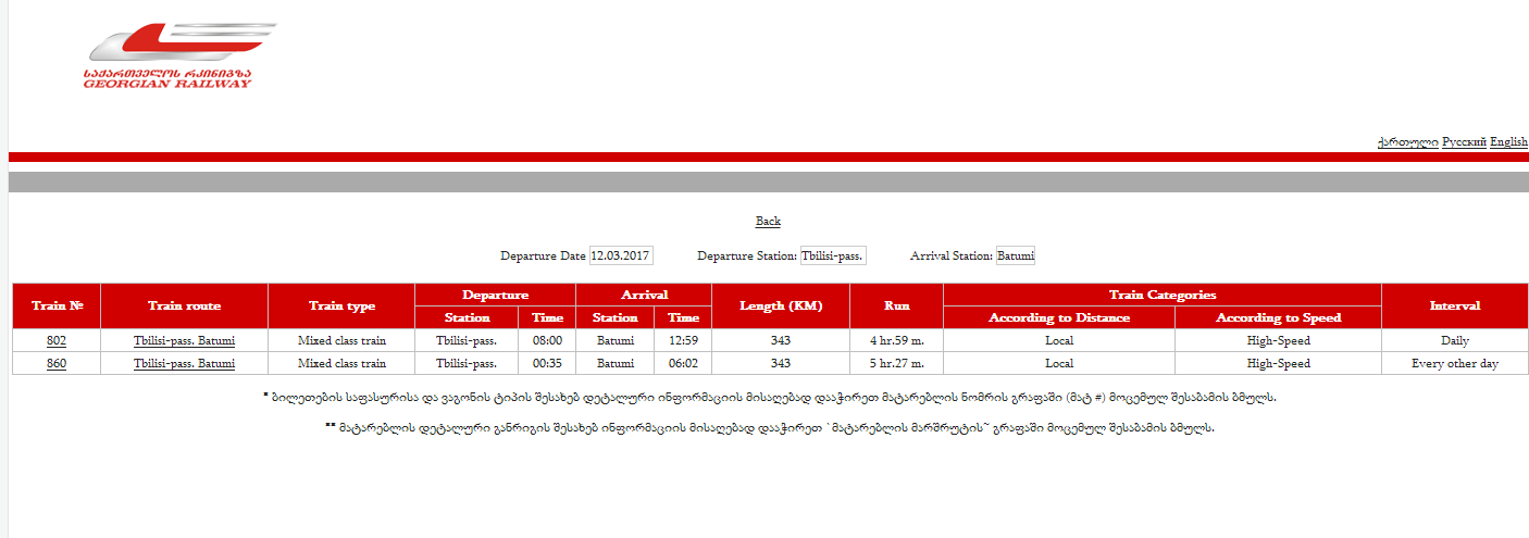 火车票价格很便宜,GEL18/人(RMB50.4),单程5小时左右