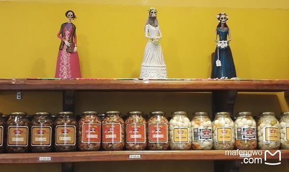 崇尚艺术的瓜纳华托城市,路旁的骷髅食品小店“LA CATRINA”: