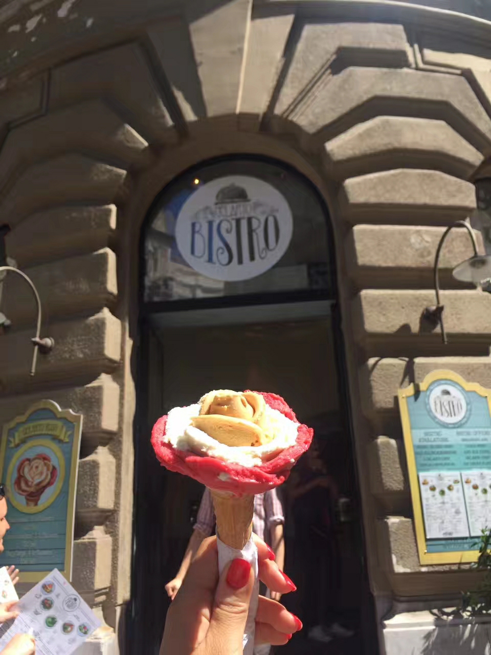布达佩斯最出名的玫瑰花冰激凌,三种口味加在一起,只要18块人民币,而且好吃到爆,秒杀八喜、DQ,甚至哈根达斯,歌帝梵。