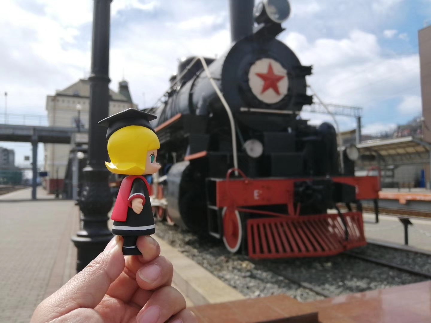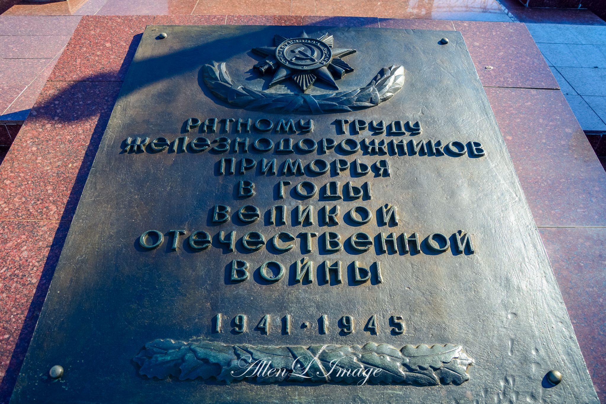 淡黄色的俄罗斯式建筑,外观古朴不失精美,这可是西伯利亚大铁路的东方终点,也是世界上唯一的一座陆港火车站,即和海运码头直接相连的火车站。月台上的9288纪念碑,表示从这里距离首都莫斯科是9288公里,颇具纪念意义。