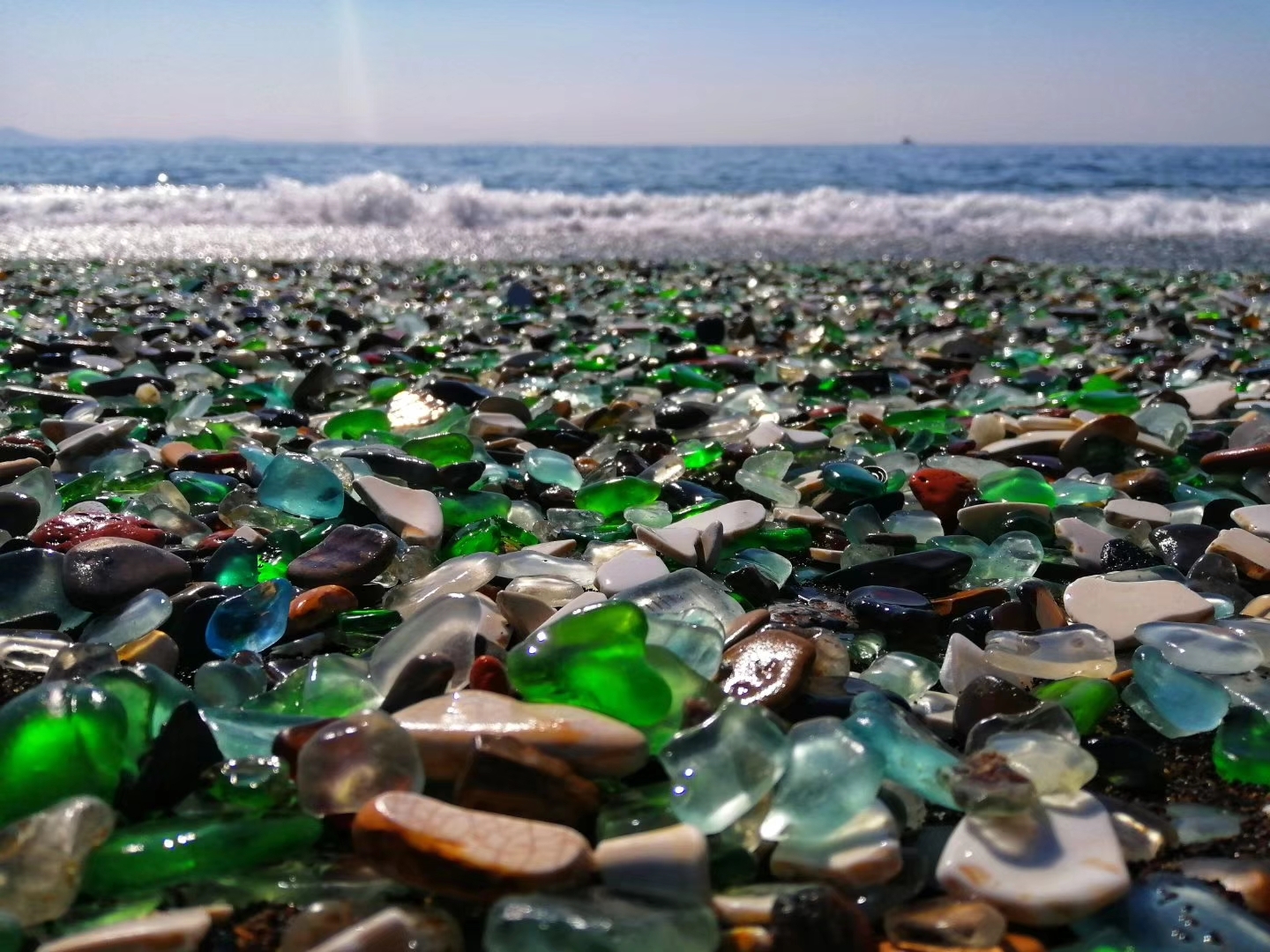 玻璃海滩应该是世界上独一无二的,酒瓶被海水冲刷形成了玻璃海滩,拍照非常美,但是实际上海滩很小!