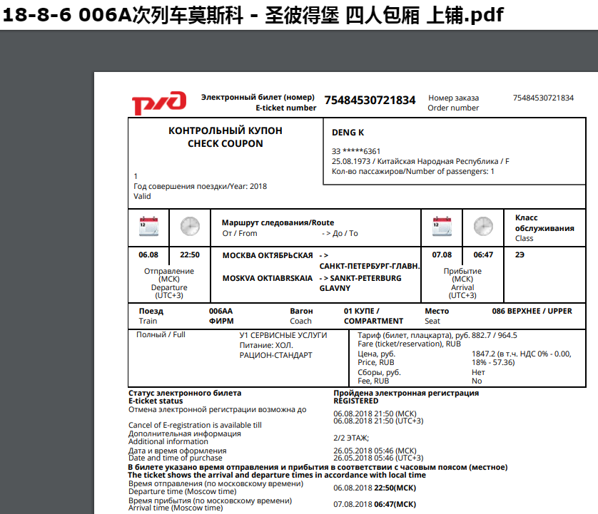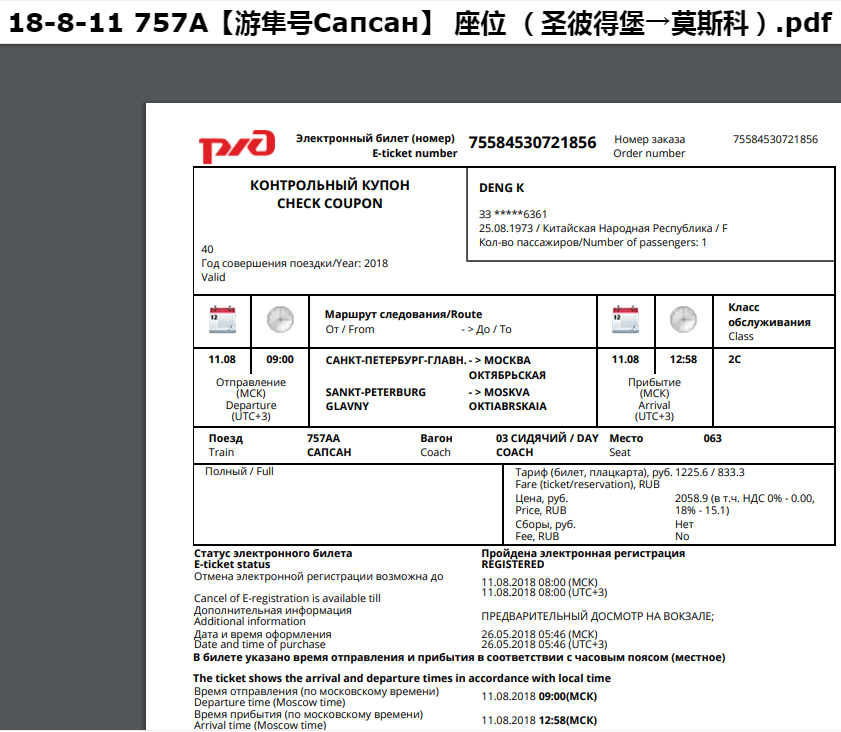 抵达海参崴机场后,建议选择通向市区的Express Train,一天5趟往返,单程票价230卢布(现场购票),耗时约54分钟,机场的发车时间分别是0745、0830、1045、1315、1740,市区的发车时间分别是0705、0802、1151、1600、1800;当然从机场也可以打车前往市区,比较合理的价位区间是1100-1400卢布,具体看个人与出租车司机的沟通了。