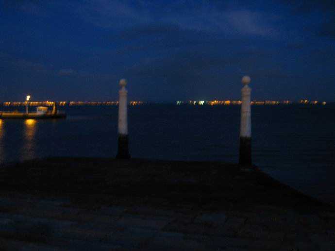 深蓝色夜空下 特茹河依旧浩浩荡荡 船上渔火影影绰绰