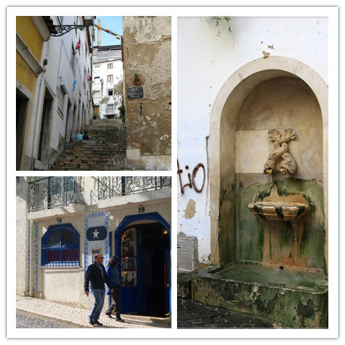 最古老的城区——阿尔法玛区Alfama 迷宫一样的街道 沿着山坡上下蜿蜒 街边是各式各样的店铺橱窗 花花绿绿 琳琅满目