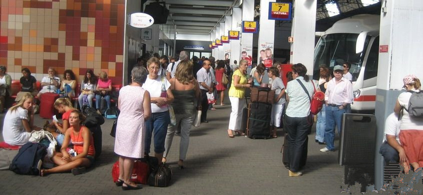 汽车站里旅客很多 大家都在安静地等待