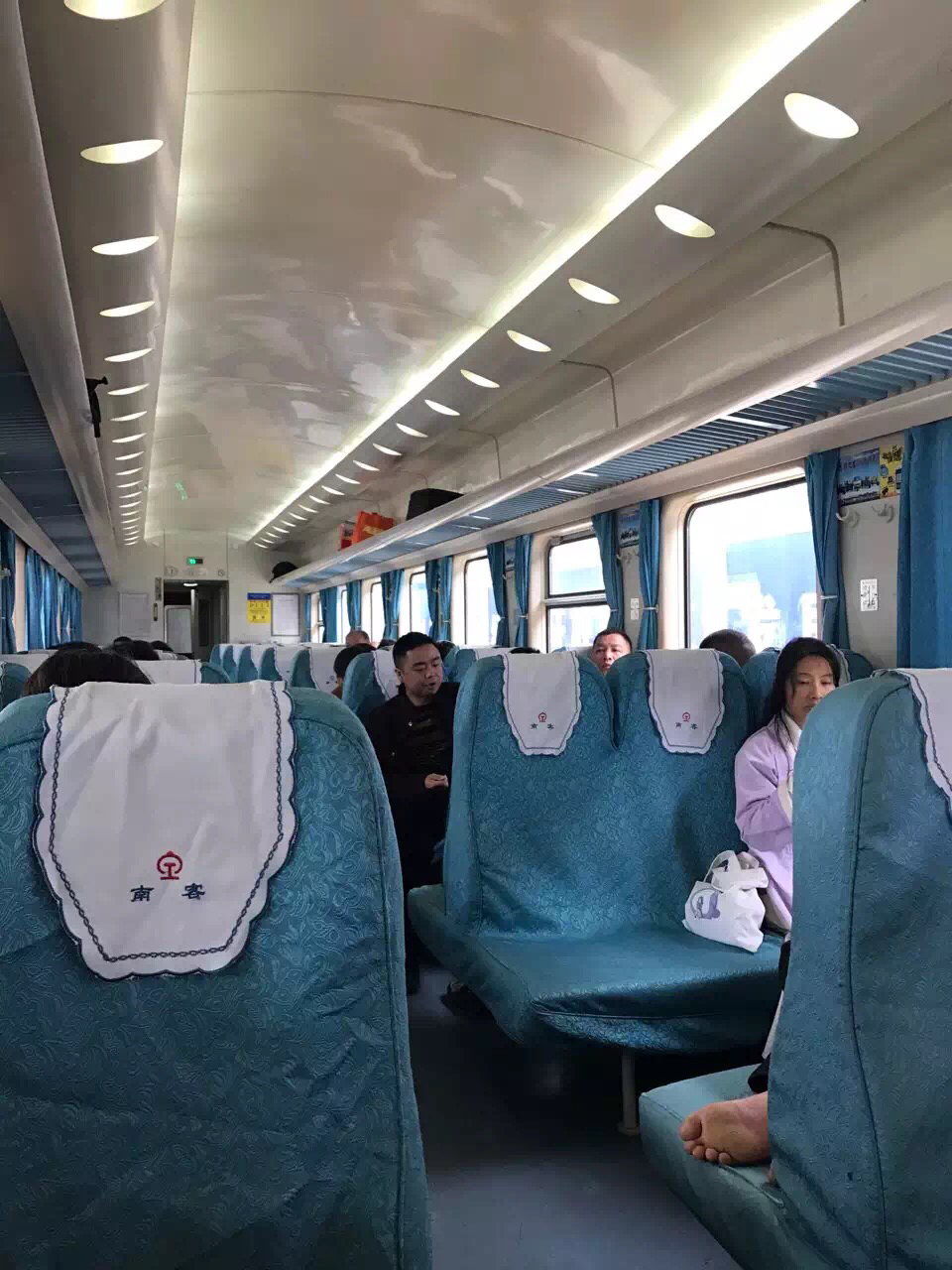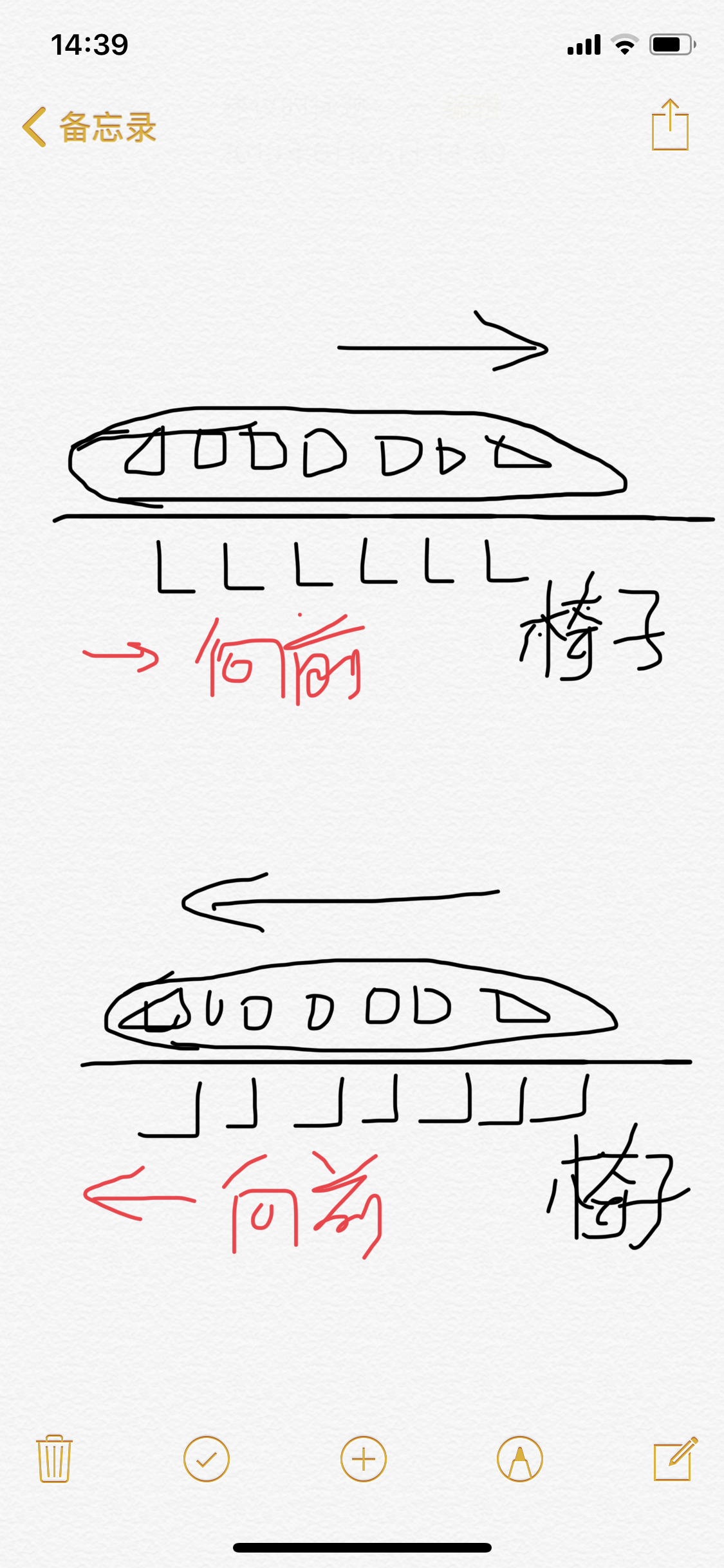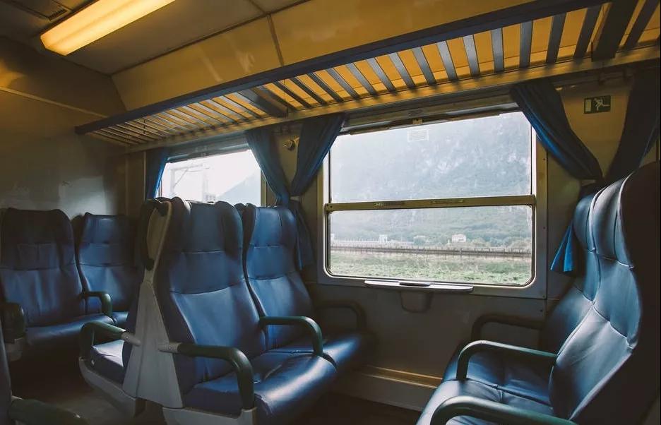 如果火车都是顺座,就会出现整车人背向火车行驶方向坐着。